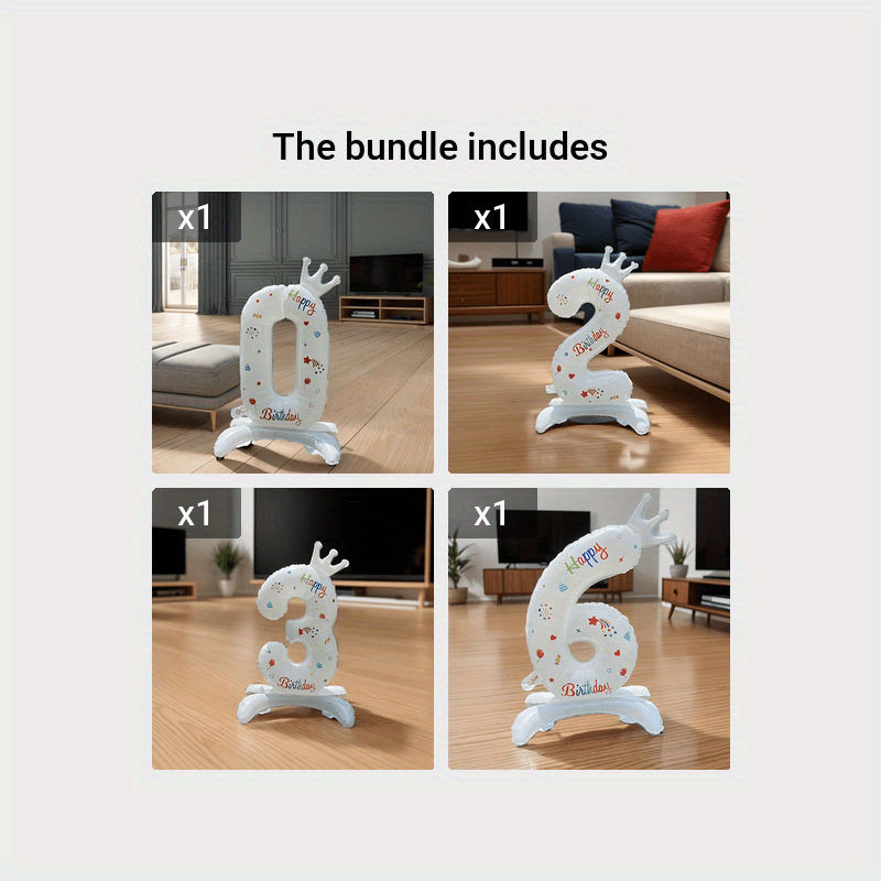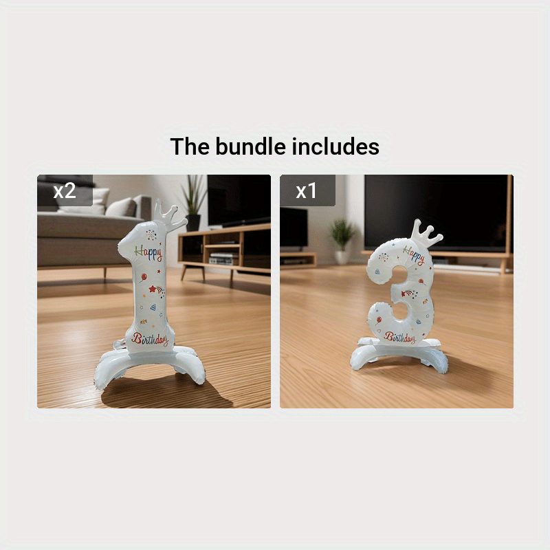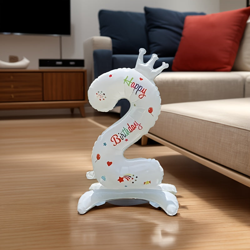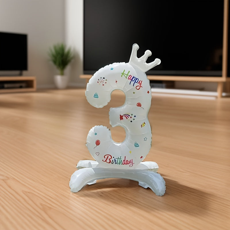 White 32-Inch Crown Number Balloon with Colorful Designs for Birthday Party