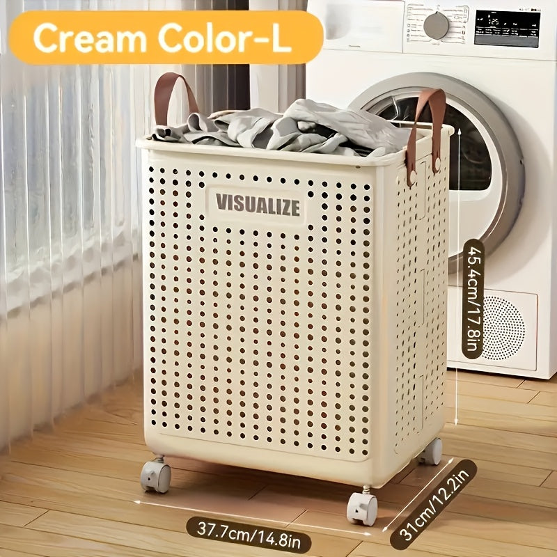 White Ceramic-Style Laundry Basket with Wheels Large Capacity Ventilated Portable
