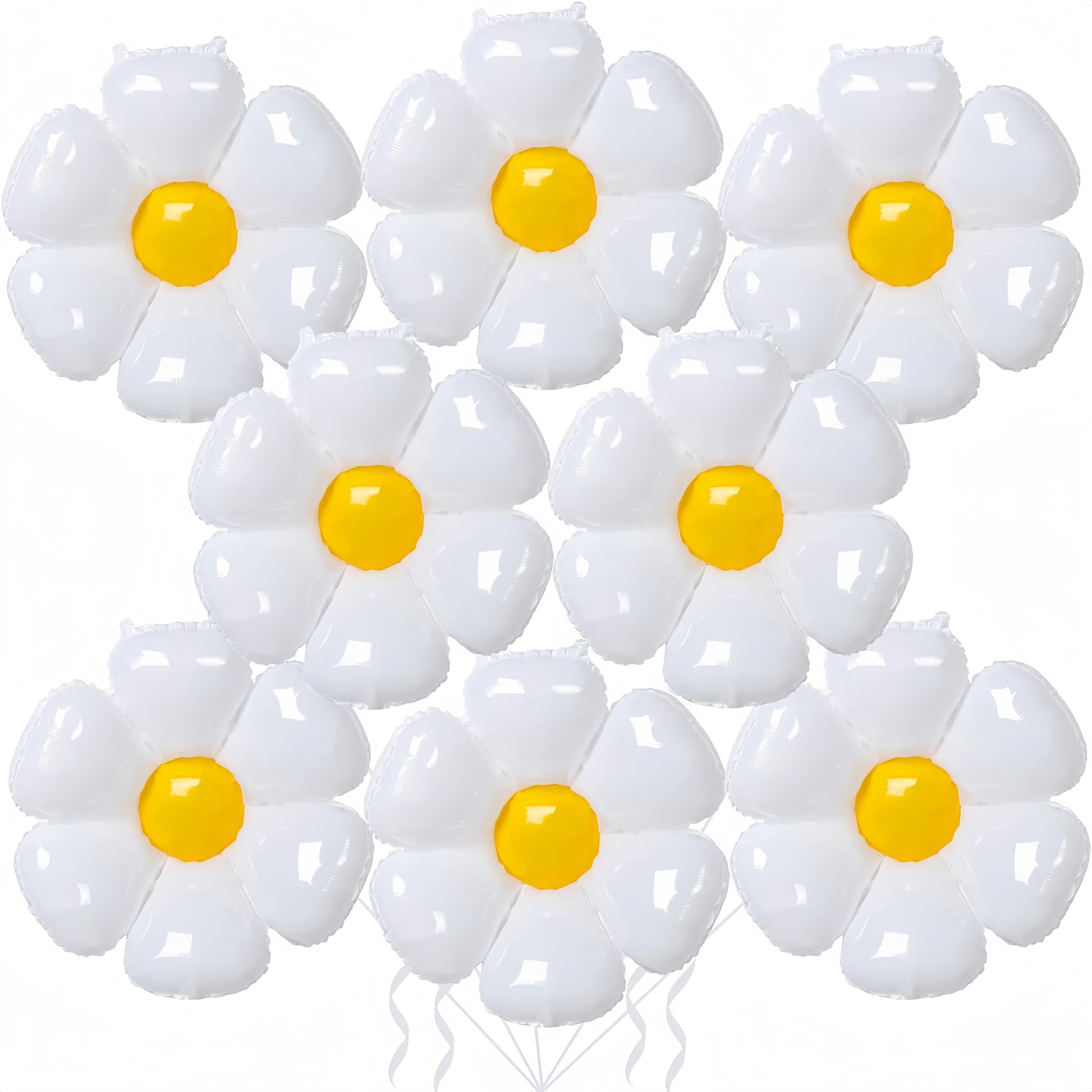 White Daisy Balloons for Parties Weddings and Anniversaries 8 Pack Non-Electric Outdoor Mylar