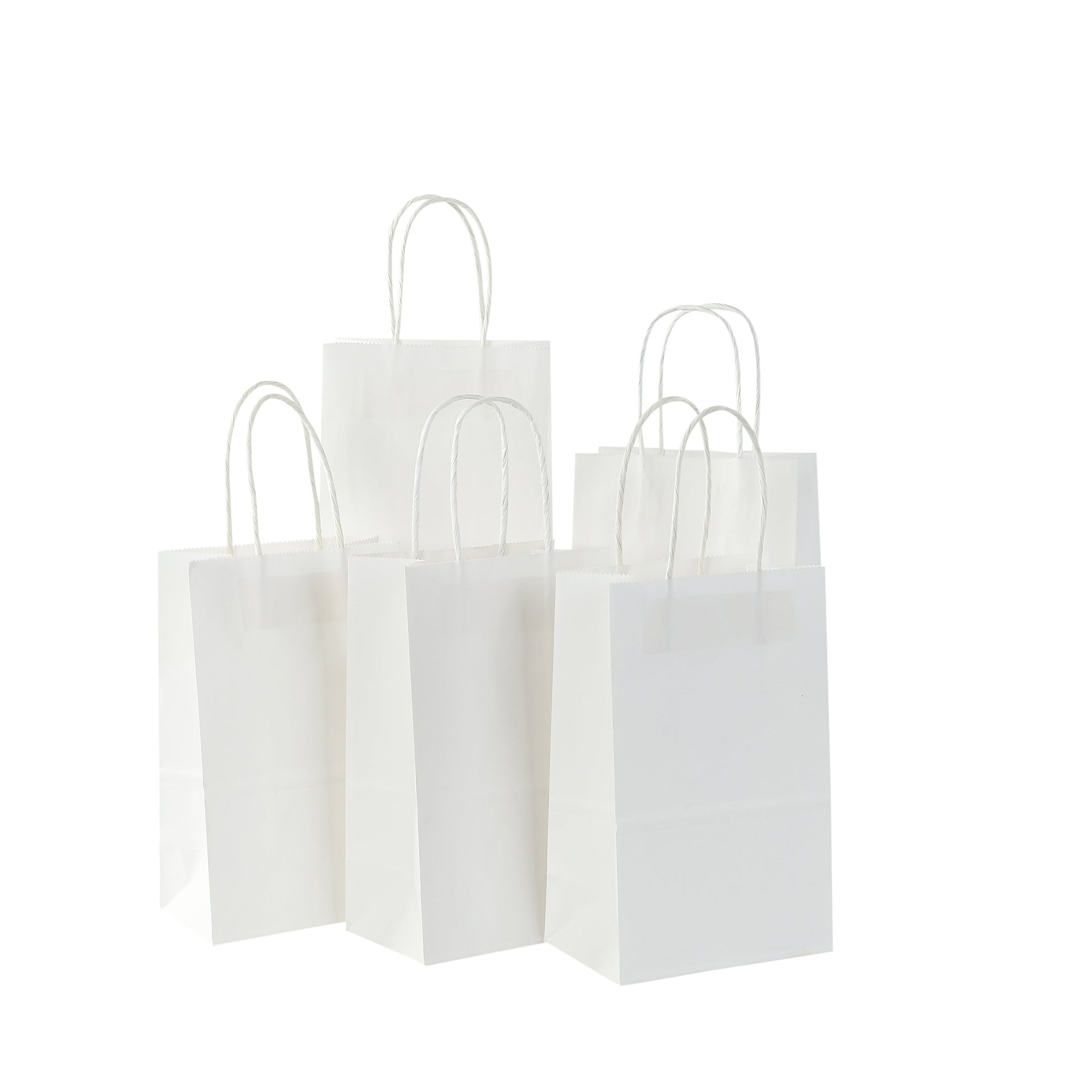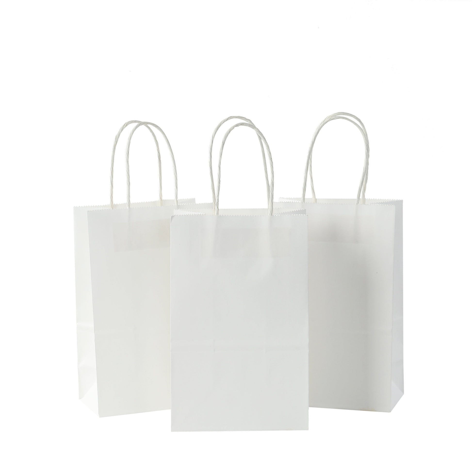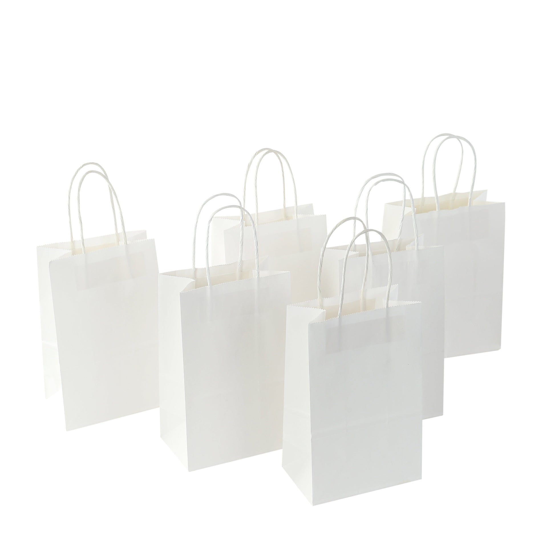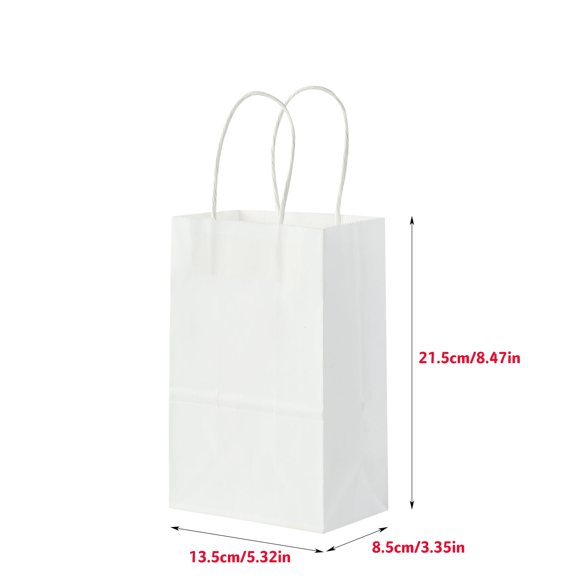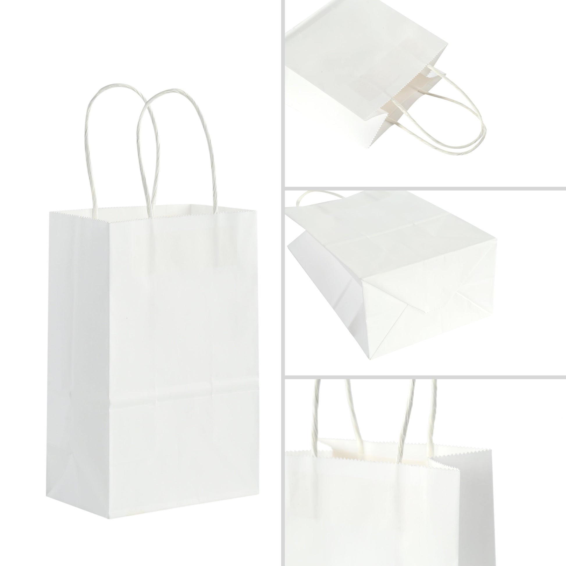 White Kraft Paper Tote Bags with Handles Set of 100 for Food Take Out Gift Wrapping