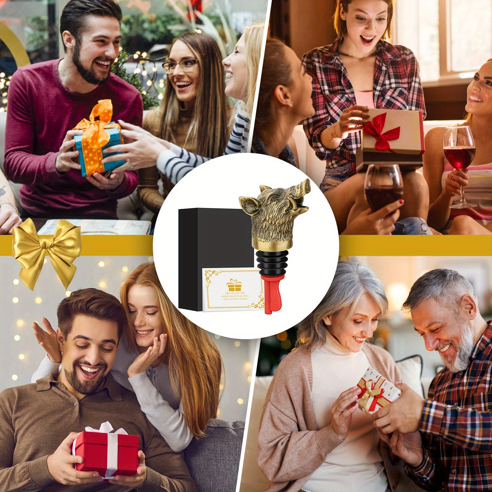 Wild Boar Head Wine Pourer with Versatile Spout Stopper and Vacuum Seal