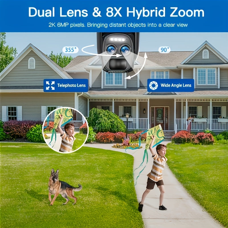 Wireless Outdoor Security Camera System with Dual Lens Motion Spotlight Color Night Vision Two-Way Talk 8x Hybrid Zoom
