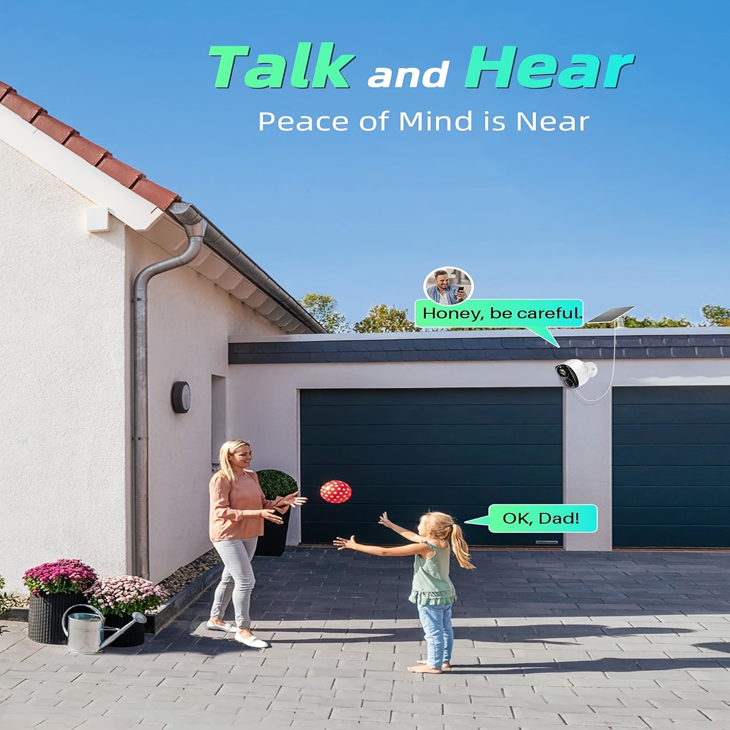 Wireless Outdoor Security Camera 3MP FHD Night Vision Spotlight Battery Solar Wi-Fi Two-Way Audio