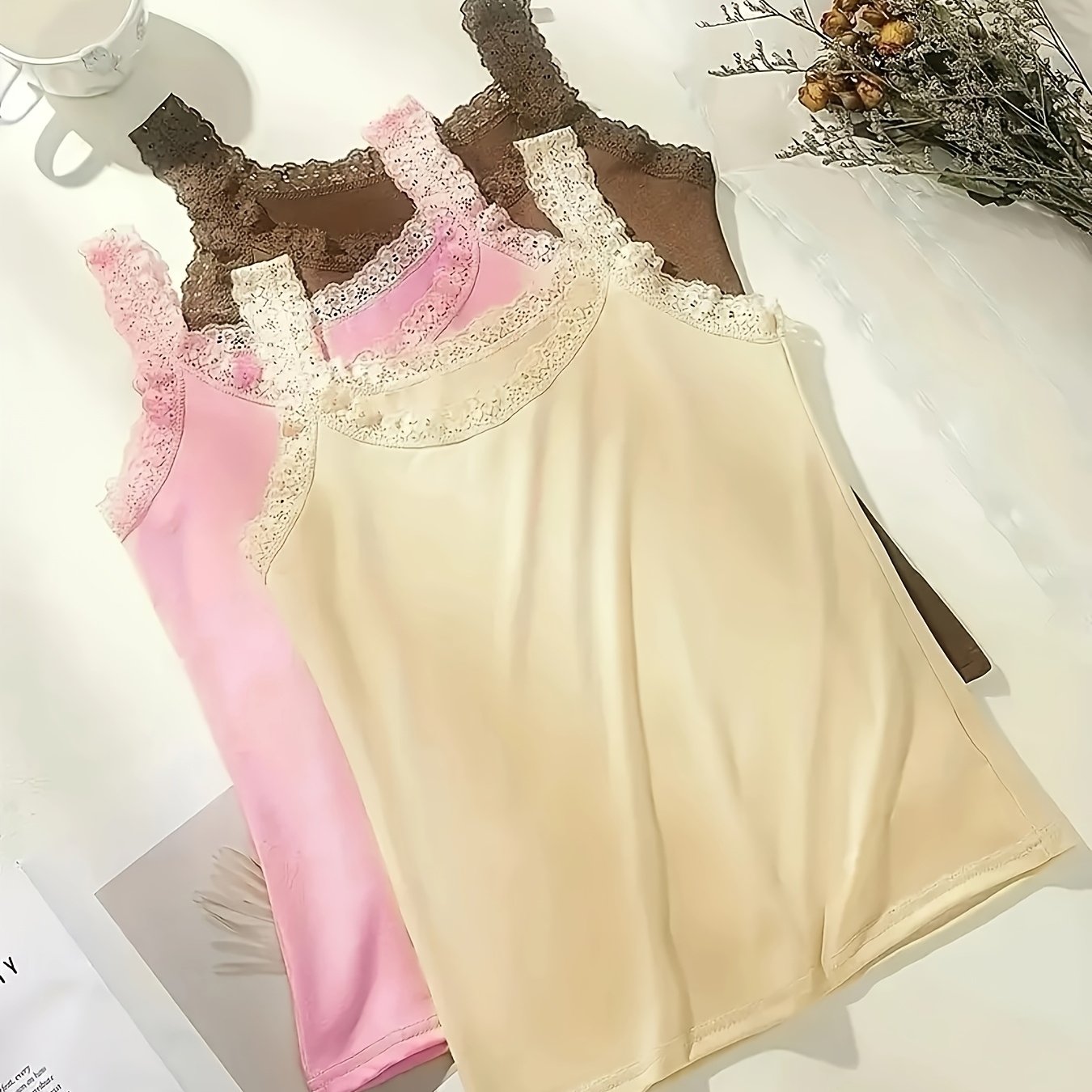 Women 3-Pack Plus Size Nylon Tank Tops Solid Color Sleeveless with Lace