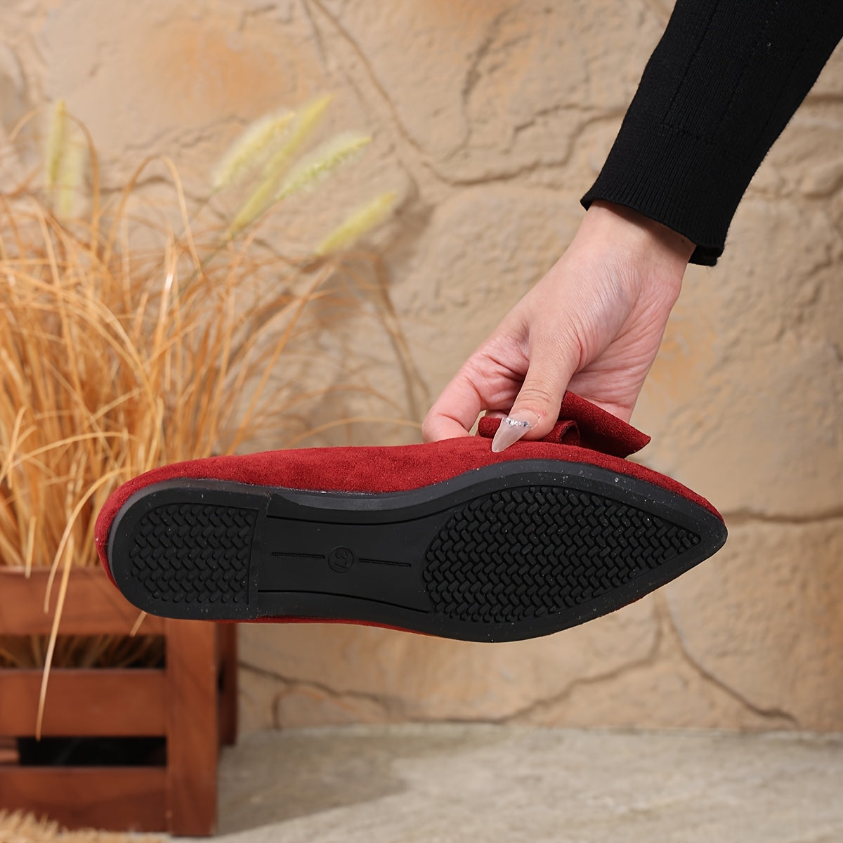 Women Black Bowknot Mary Jane Flats Leather Pointed Toe Slip-On Shoes