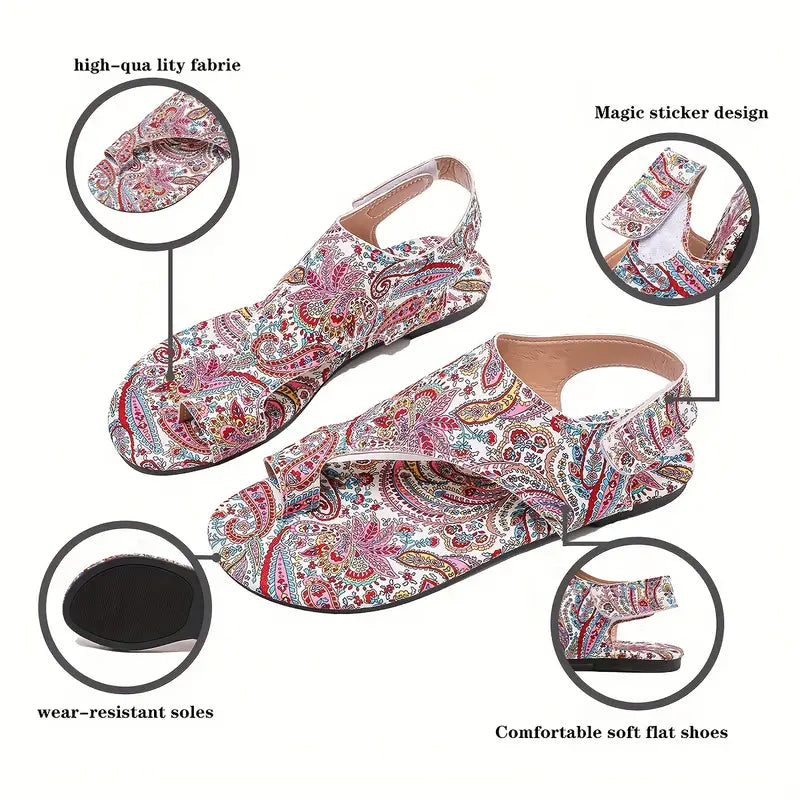 Women Bohemian Sunflower Print Flip Flops Flat Sandals with Adjustable Closure