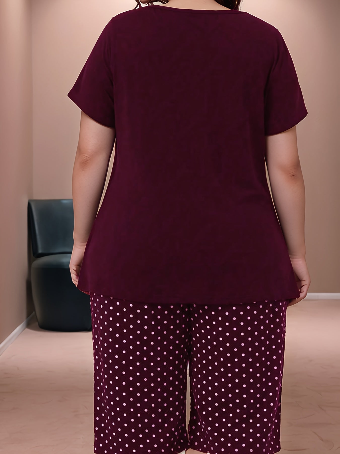 Women Casual Short Sleeve Pajama Set Large Size
