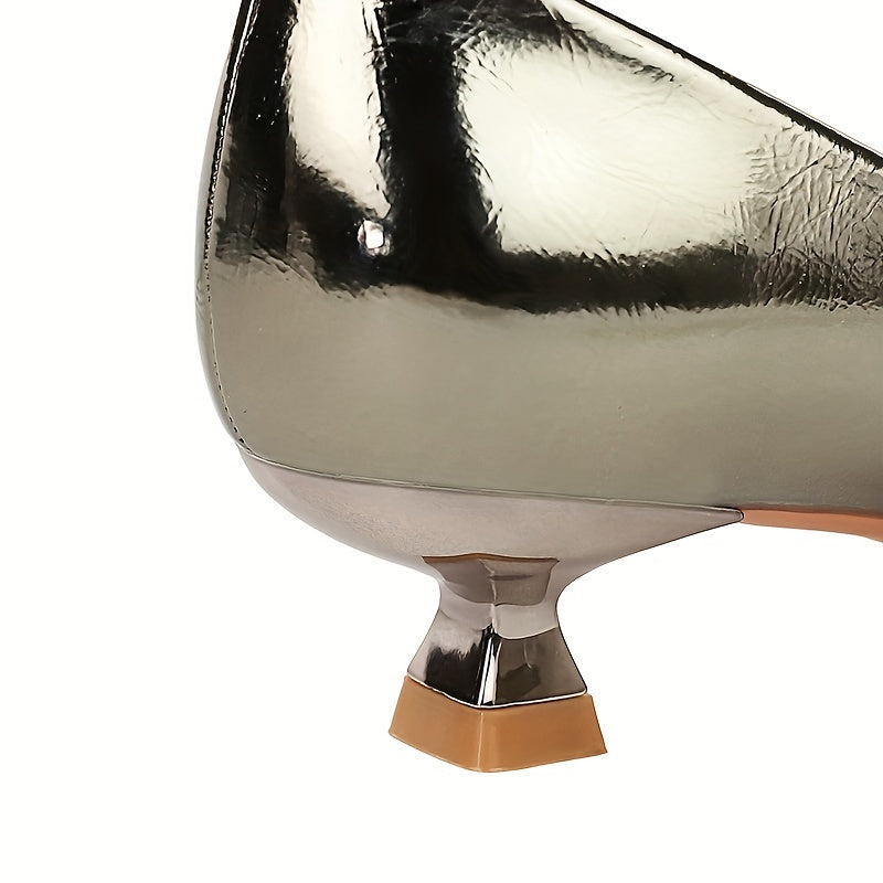 Women Leather Pointed Toe Pumps Low Heel Spring Autumn Party Shoes