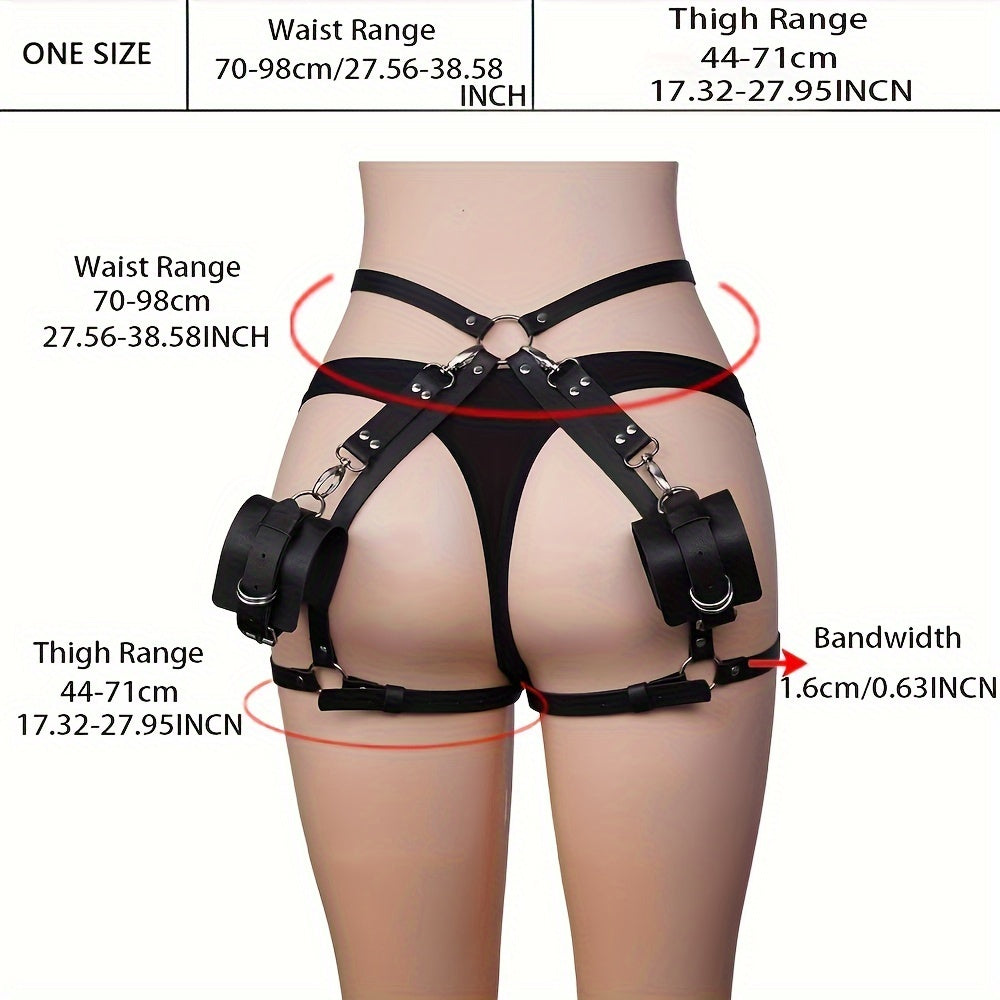 Women Leather Punk Harness Glossy Black Adjustable Waist plus Size