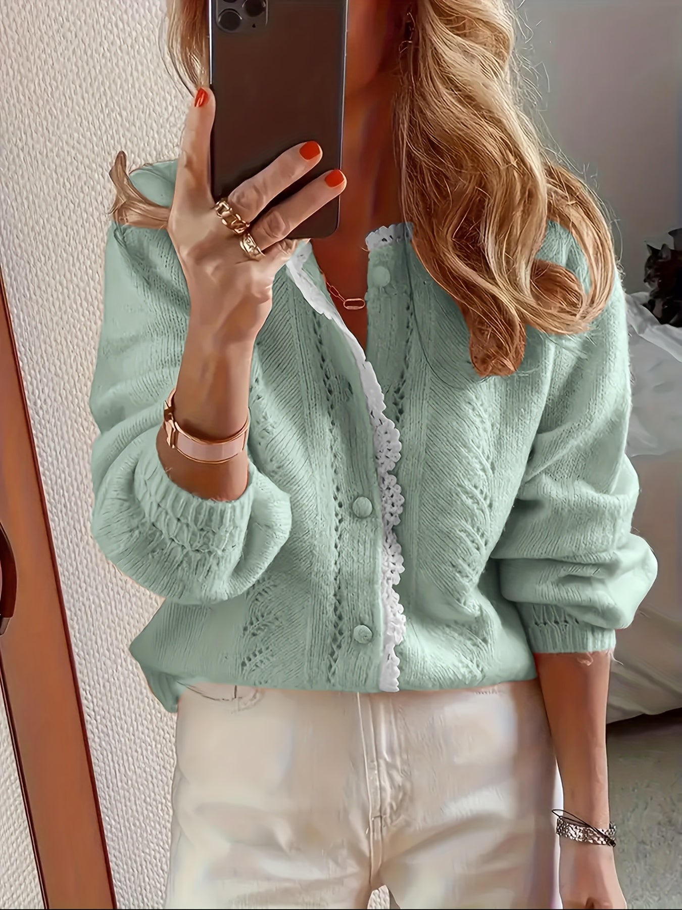 Women Plus Size Casual Cardigan Solid Color Collarless Spring Fall Outerwear