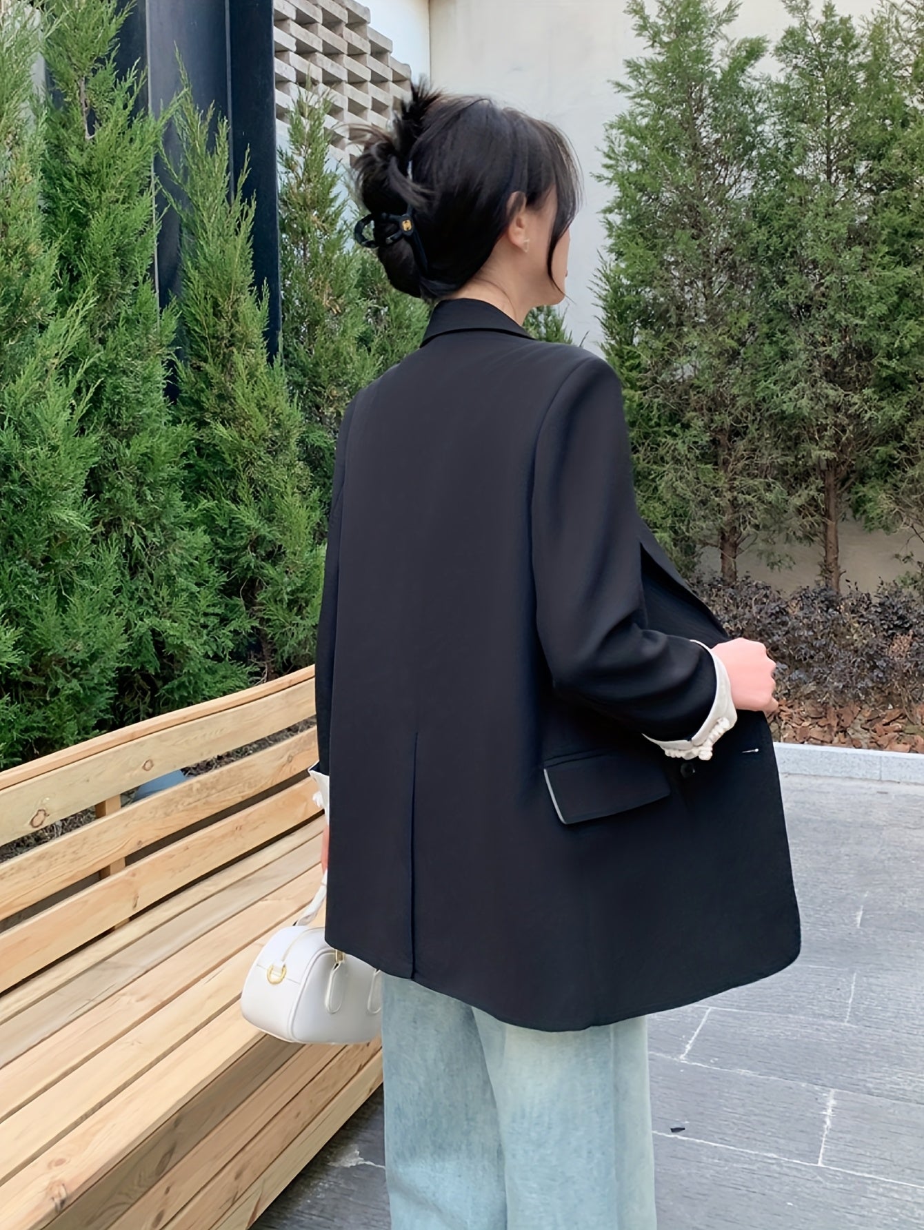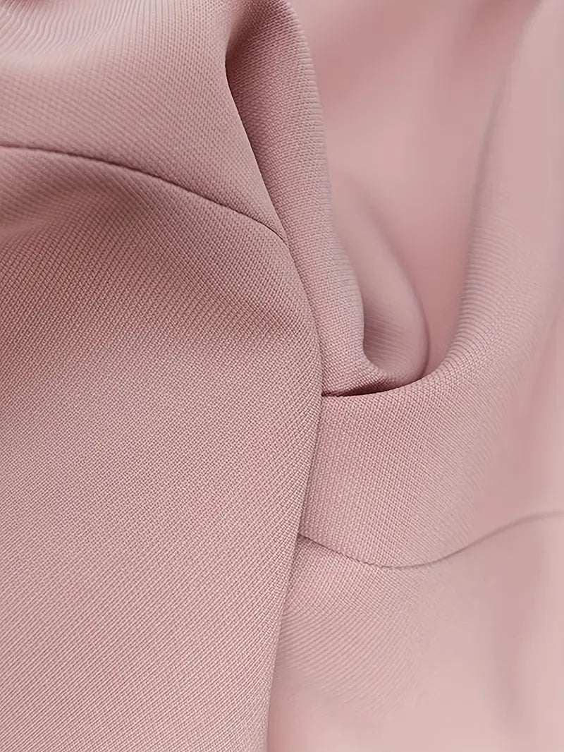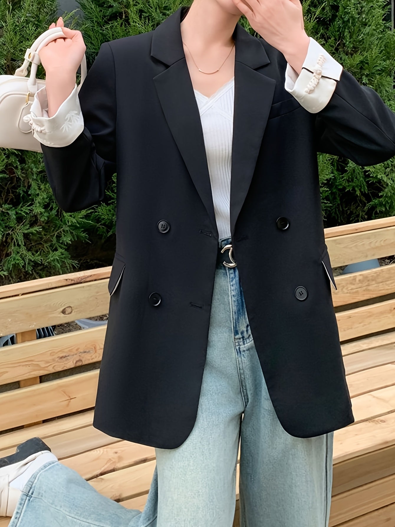 Women Plus Size Light Pink Double-Breasted Blazer Long Sleeve Office Casual