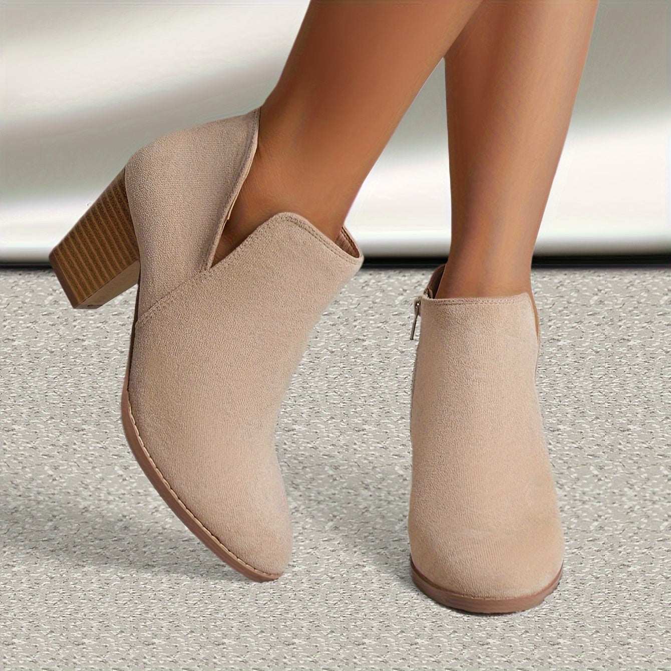 Women's Ankle Boots With Zipper Closure, High Block Heels, PU Lined