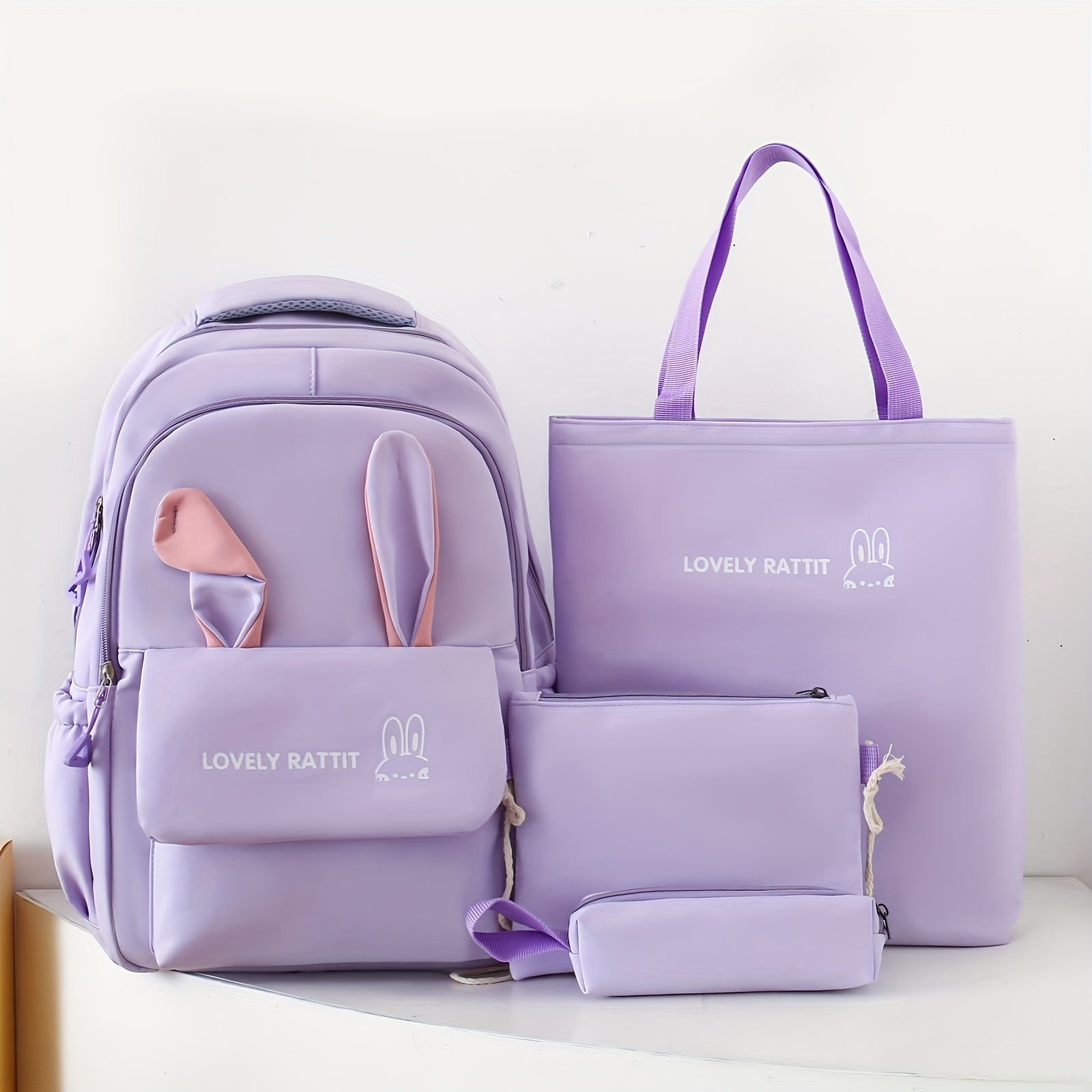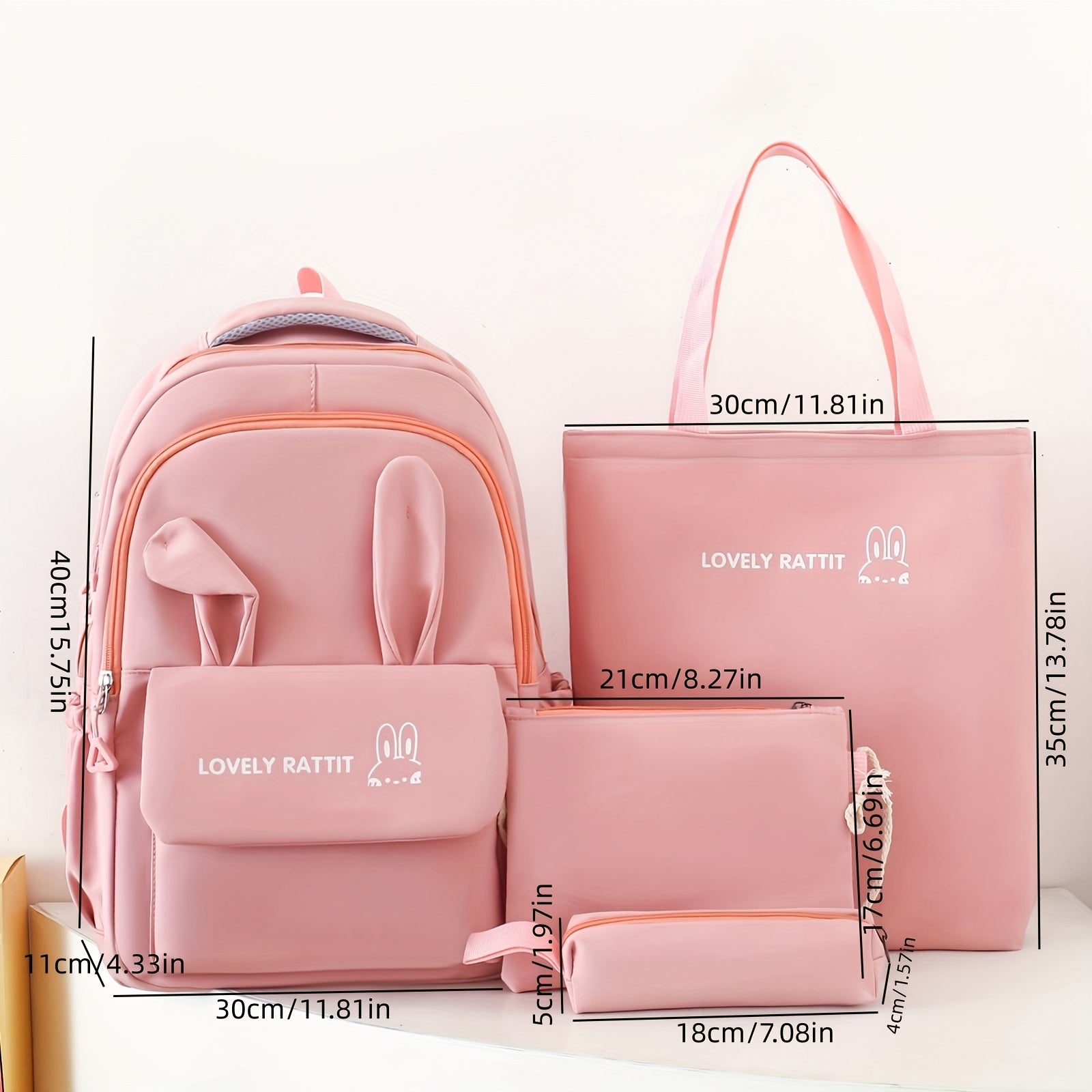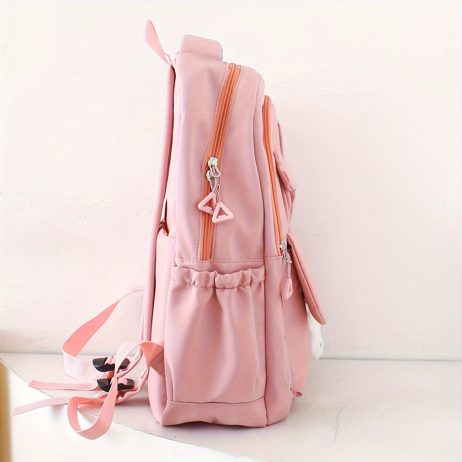 Women's Nylon Backpack Set with Cartoon Ears, Large Capacity, Zipper Closure