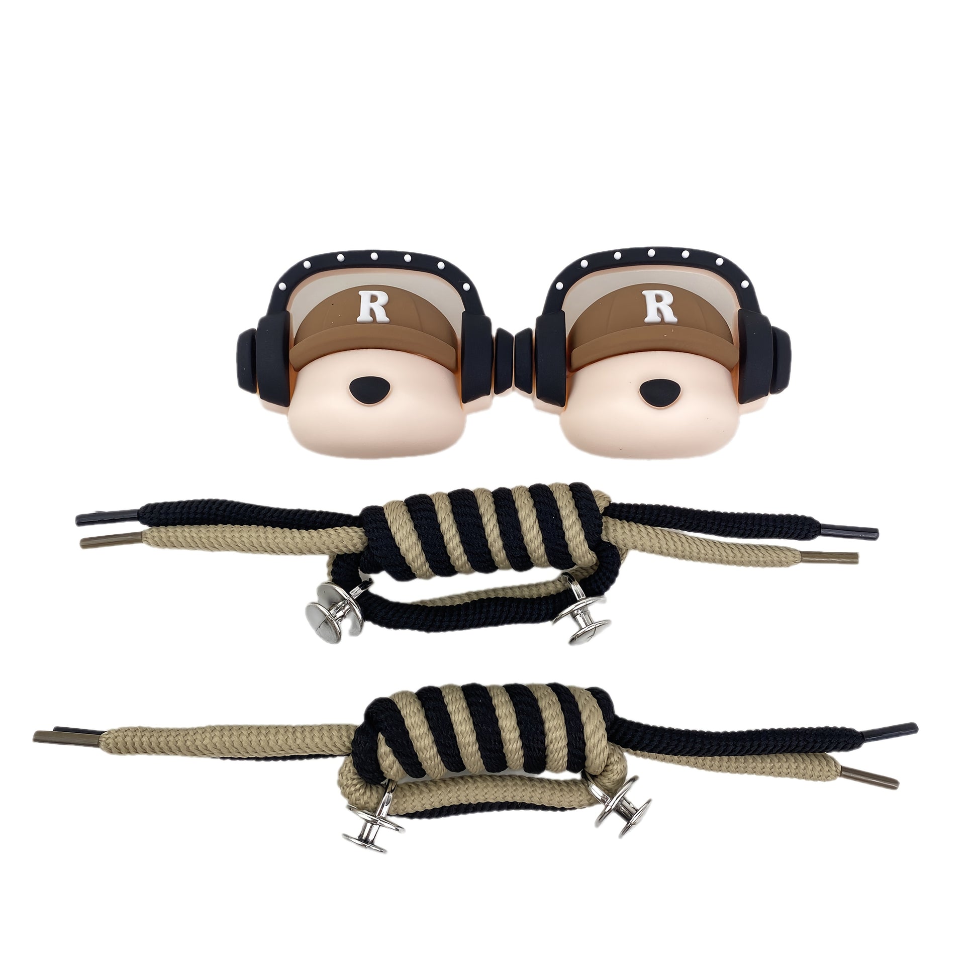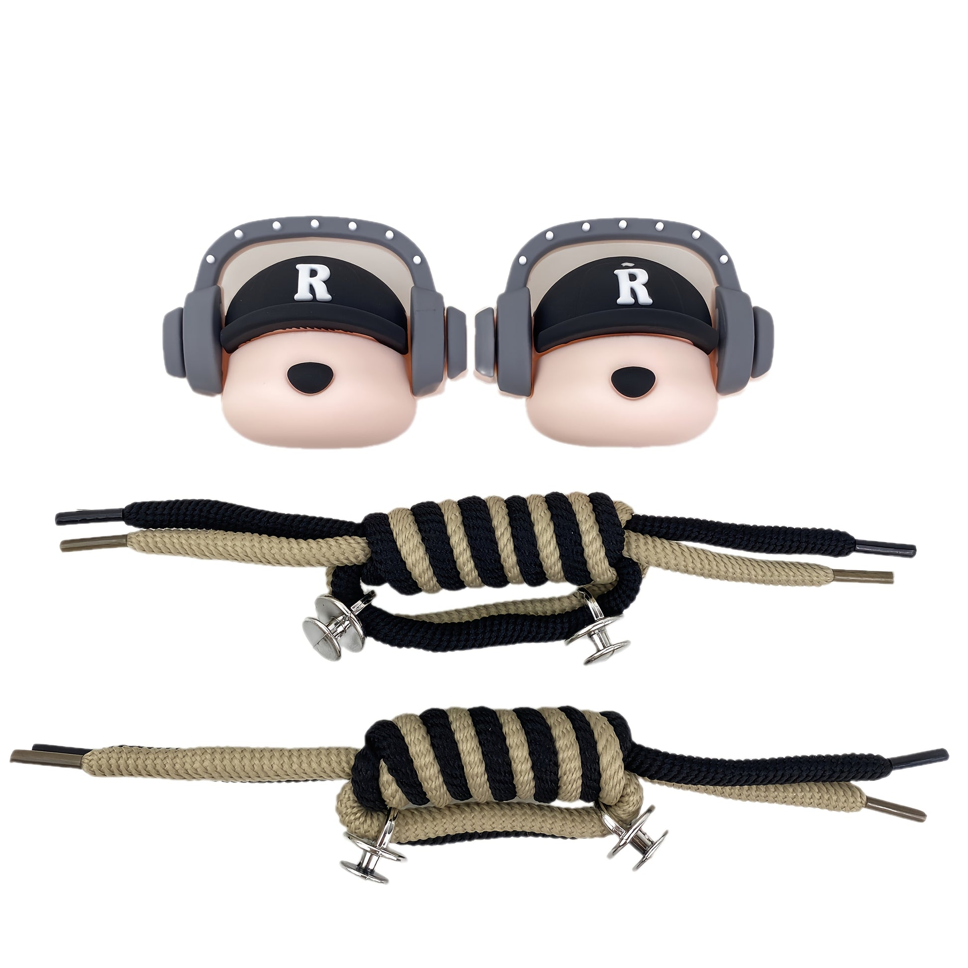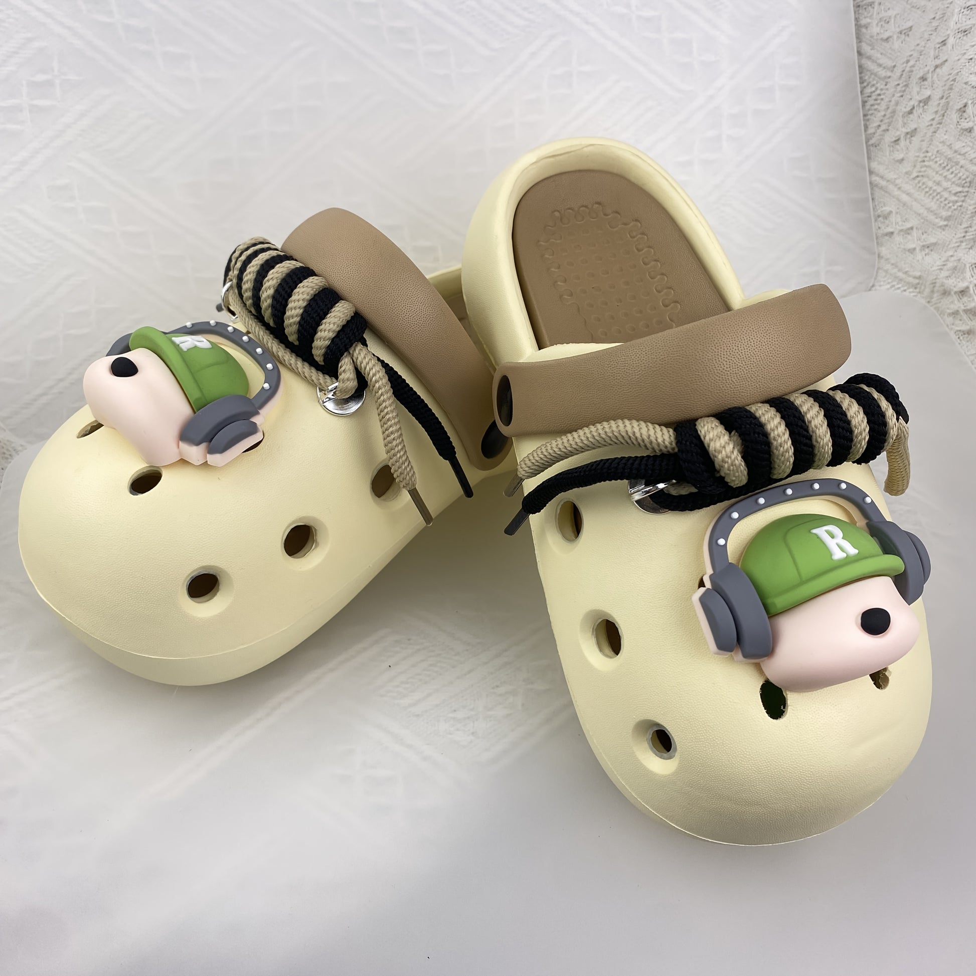 Women's Beige Clog Shoes with Dog Ear Headphones Design Comfort Casual