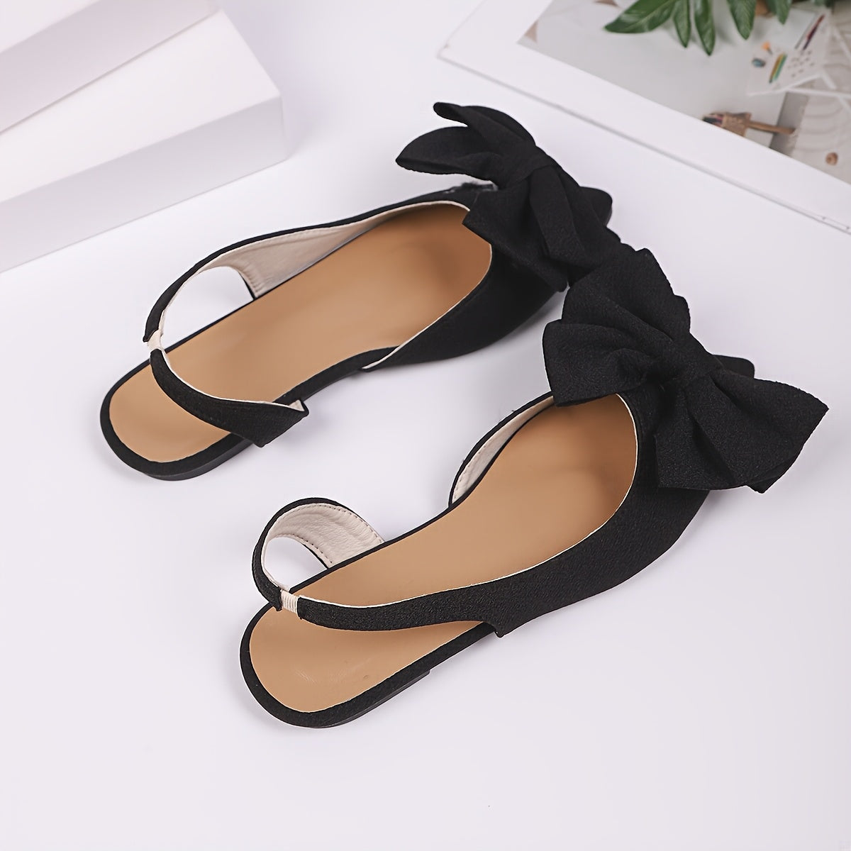 Women's Black Fabric Bow-Decorated Pointed Toe Slip-On Sandals