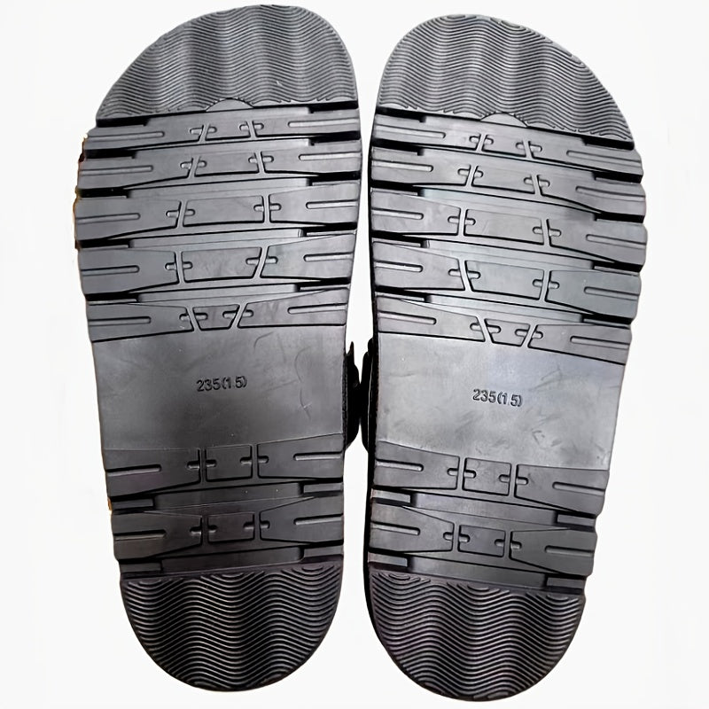 Women's Black Flat Sandals with Buckle Closure, Round Toe, Thick Sole