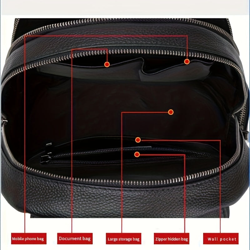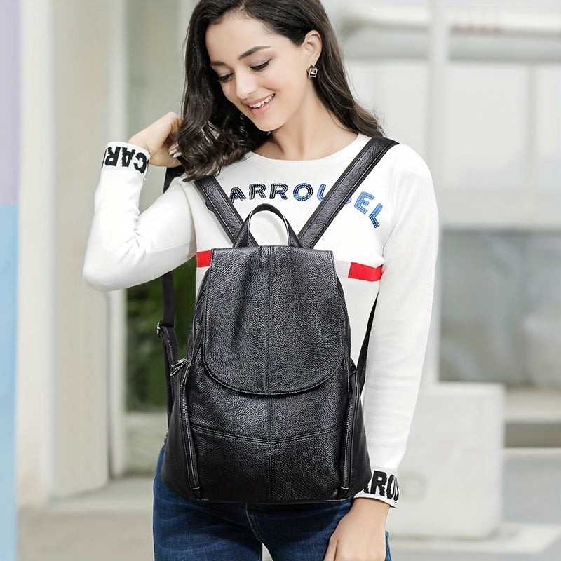 Women's Black Genuine Leather Backpack with Adjustable Strap and Drawstring Closure