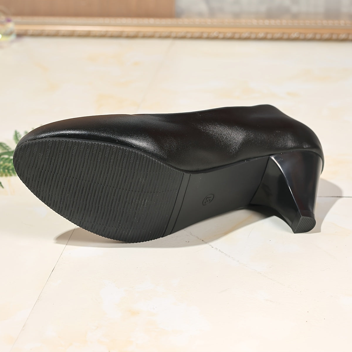 Women's Black High Heels Flare Fit Round Toe Thick Sole Pump