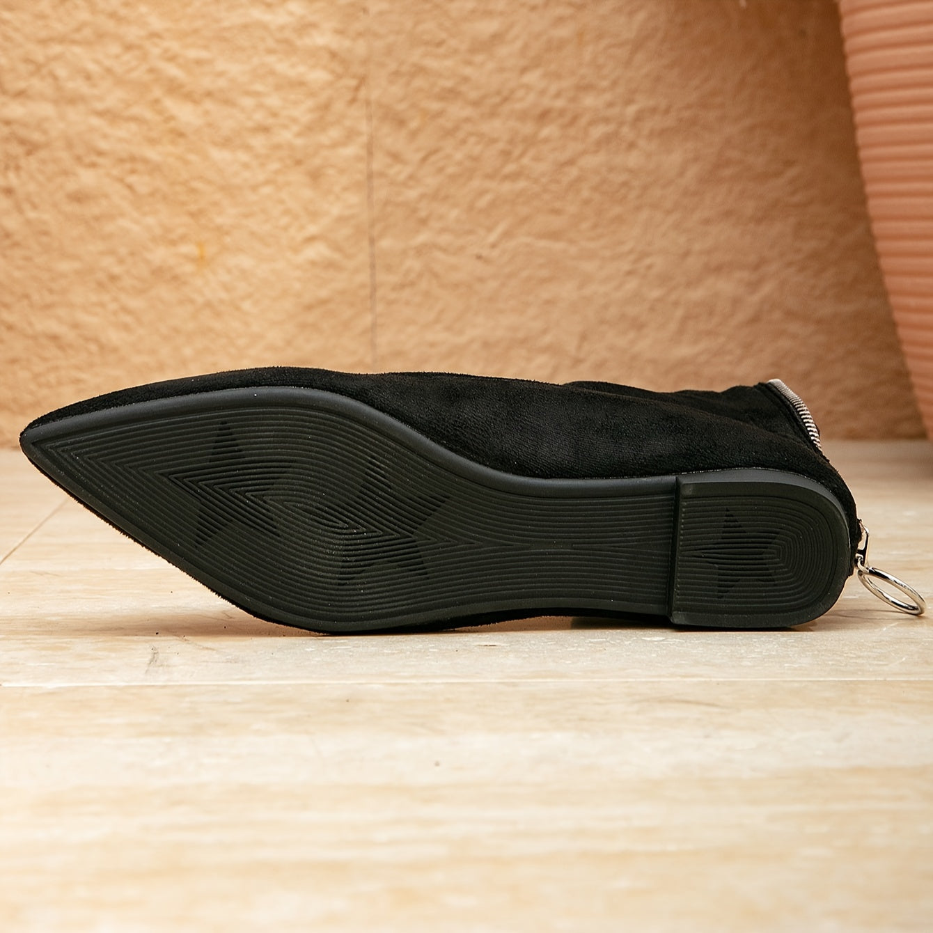 Women's Black Mid-Calf Boots Cozy Cover Pointed Toe Zipper Flat Heel
