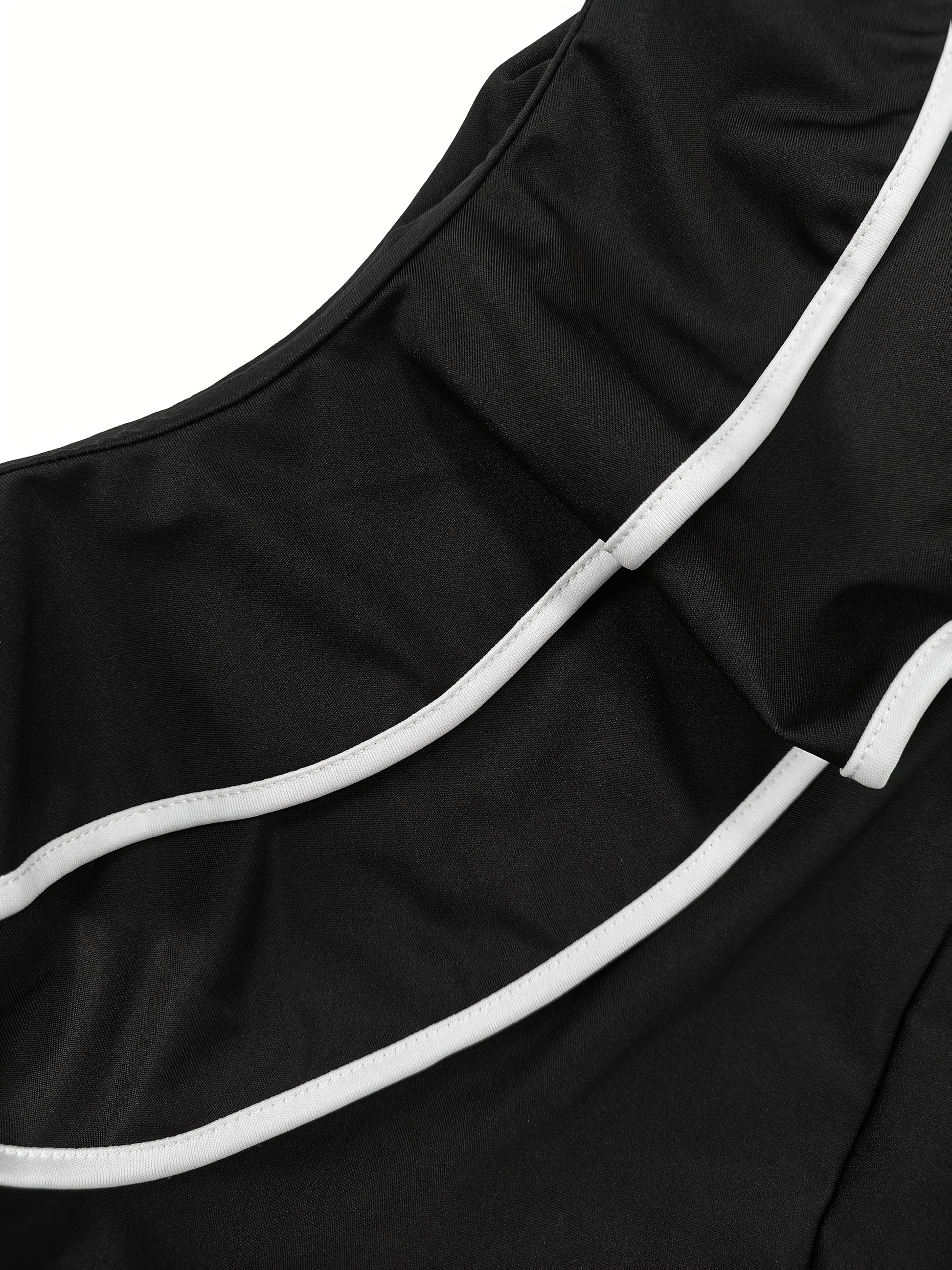 Women's Black Off-Shoulder Ruffle Jumpsuit with Waist Tie and Wide Legs