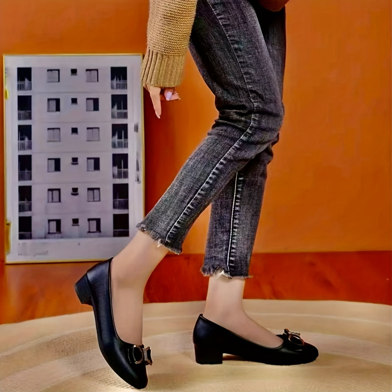 Women's Black Pointed Toe Block Heel Pumps with Sparkling Bow for Work and Formal Events
