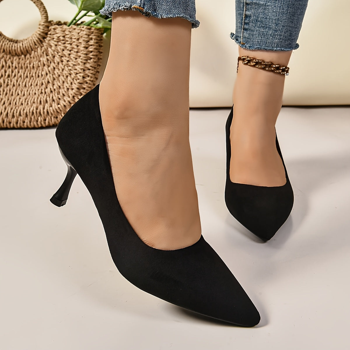 Women's Black Stiletto Heels Leather Elegant Comfortable Work Shoes