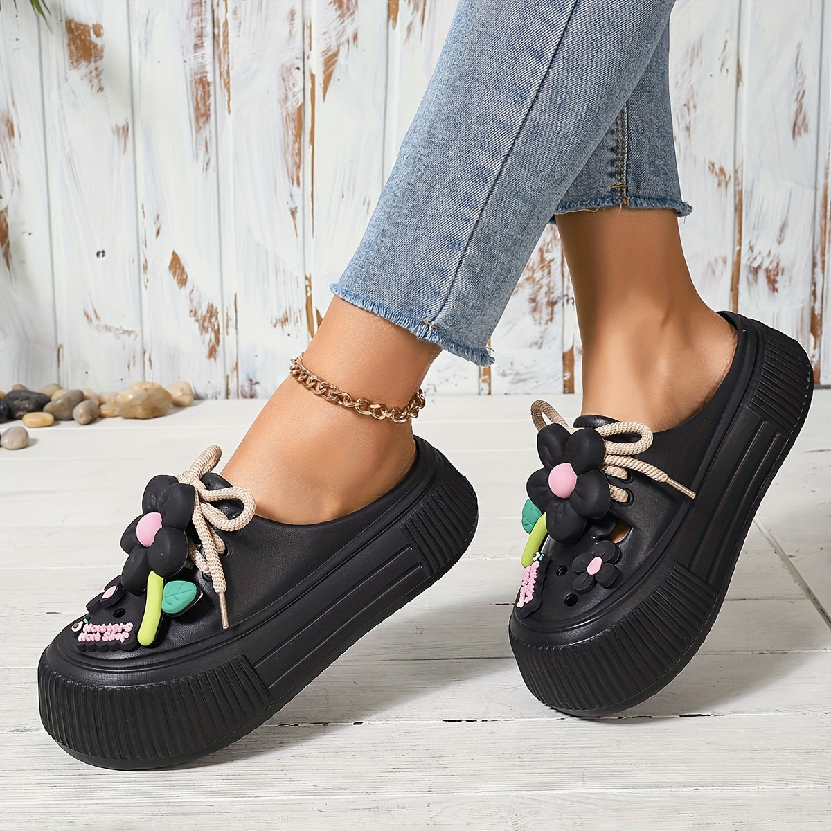 Women's Casual Flower Pattern EVA Mules, Sunflower Design, Flat Heel