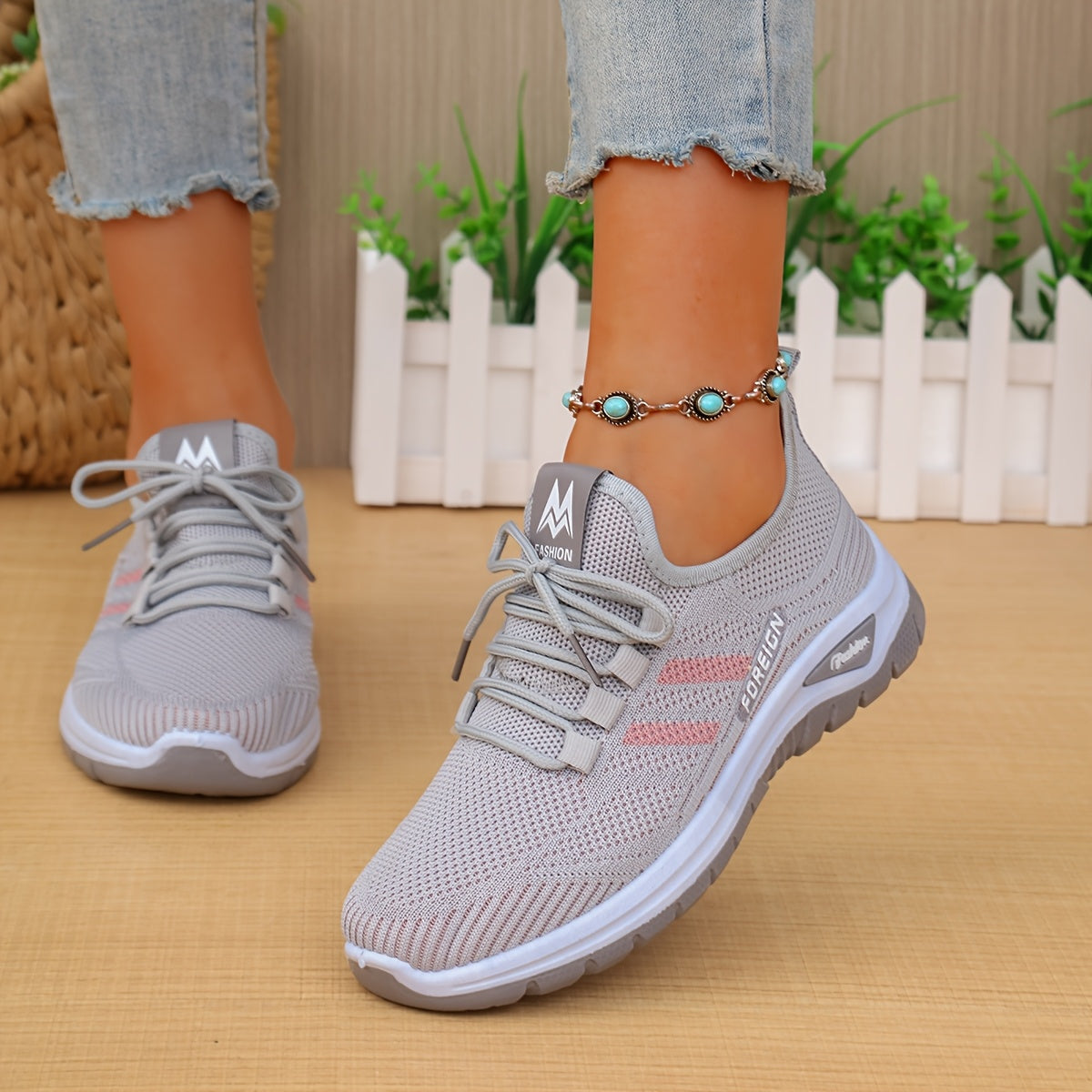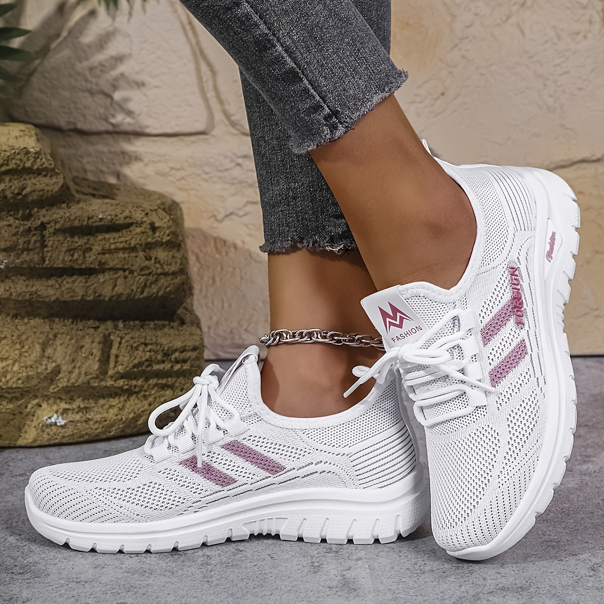 Women’s Casual Running Shoes White Pink Breathable Non-Slip