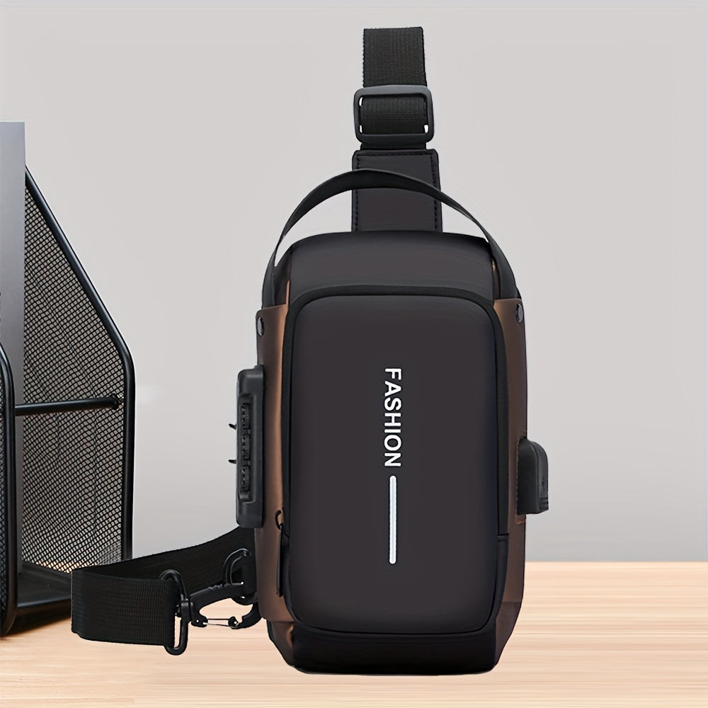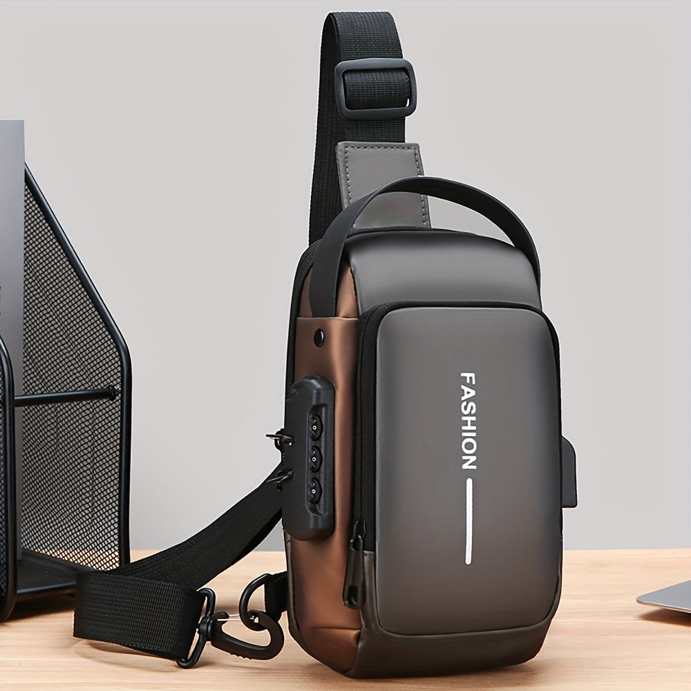 Women's Blue Oxford Fabric Crossbody Bag with Motorcycle Style and Combination Lock Strap