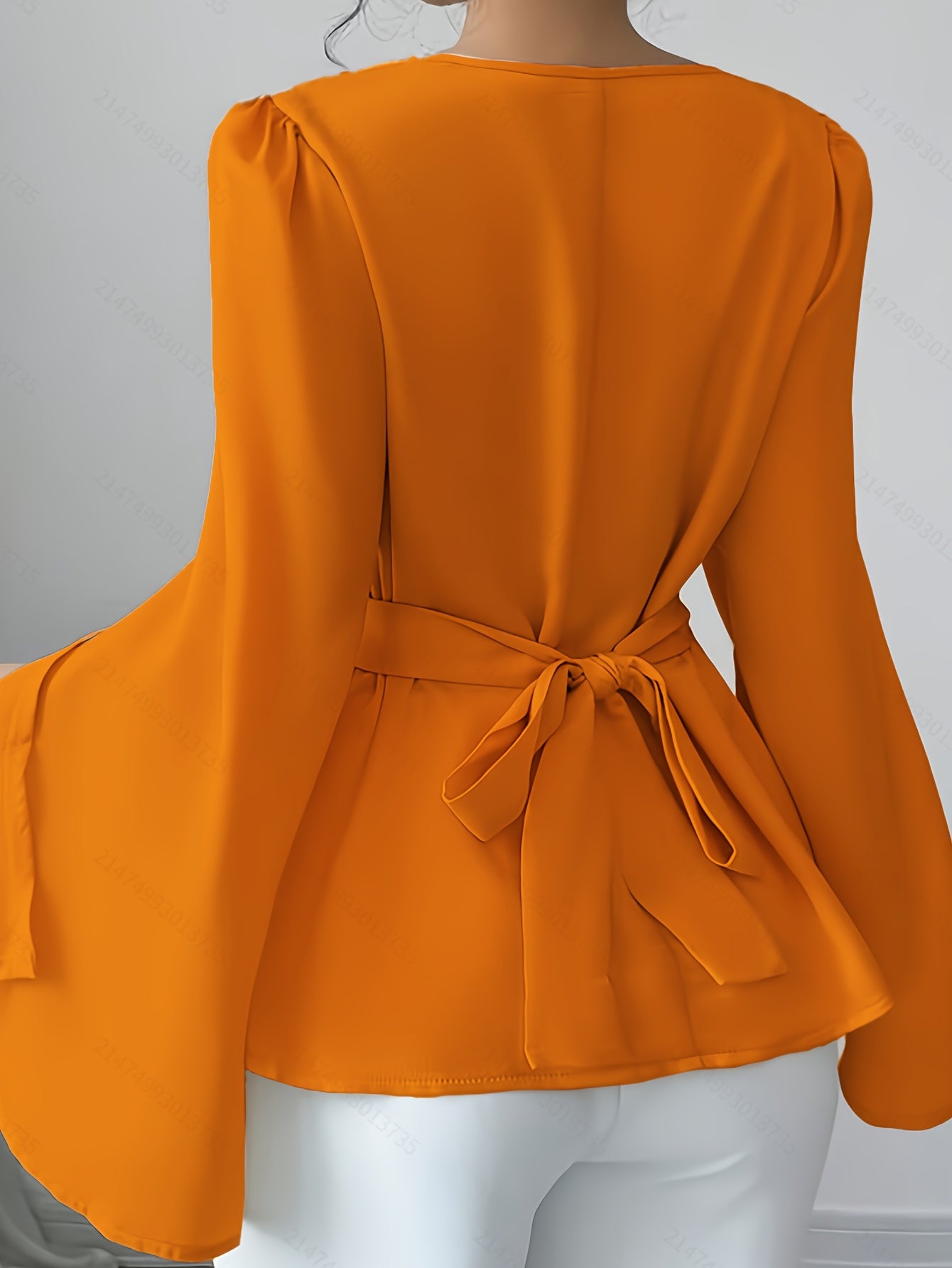 Women's Solid Color Long Sleeve Top with Lace-Up Bow-Knot Detail and Lapel Collar