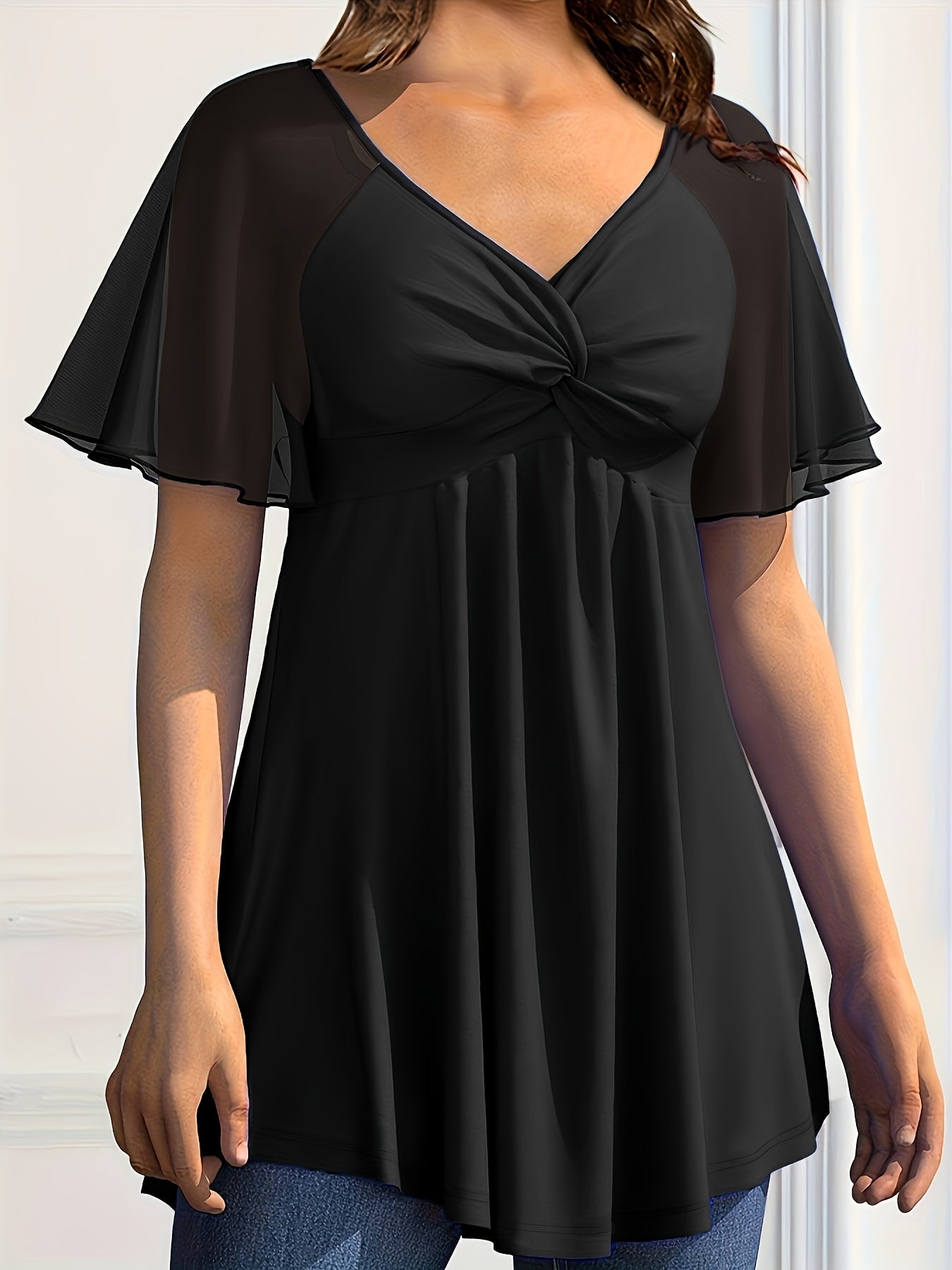 Women's Elegant V-Neck Chiffon Top Lightweight Knotted Blouse