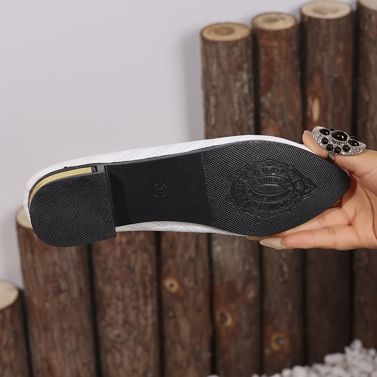 Women's Embroidered Flat Shoes - Pointed Toe, White, Breathable, All-Season