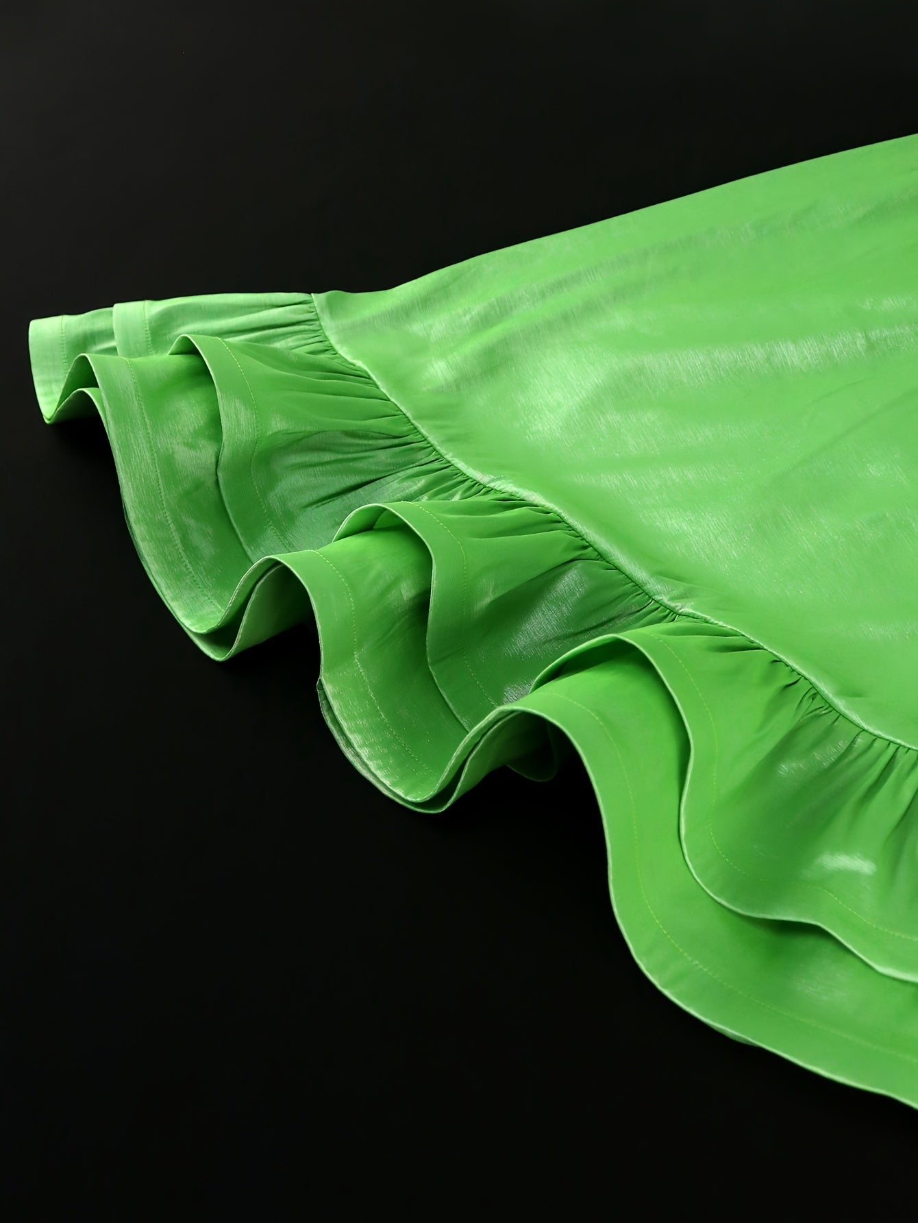 Women's Emerald Green Bodycon Dress V-Neck Ruffle Sleeves Adjustable Belt