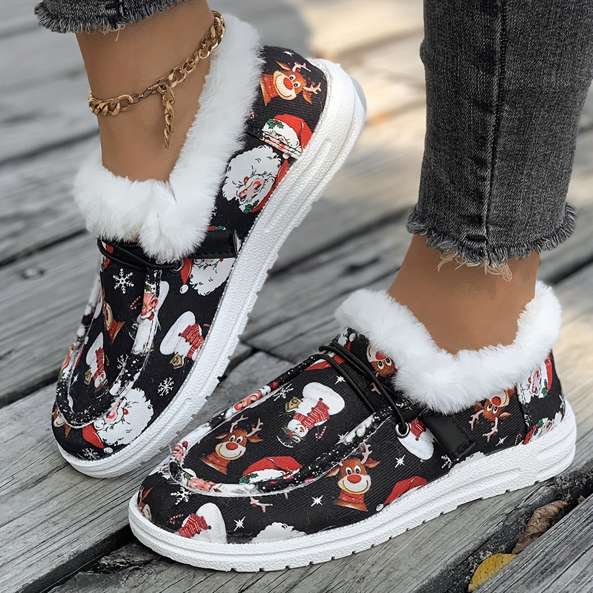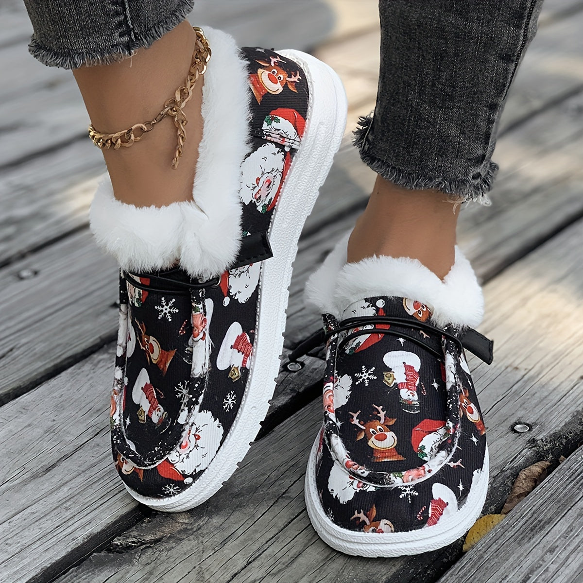 Women’s Festive Santa Snowman Print Casual Shoes Lightweight Fabric Non-Slip