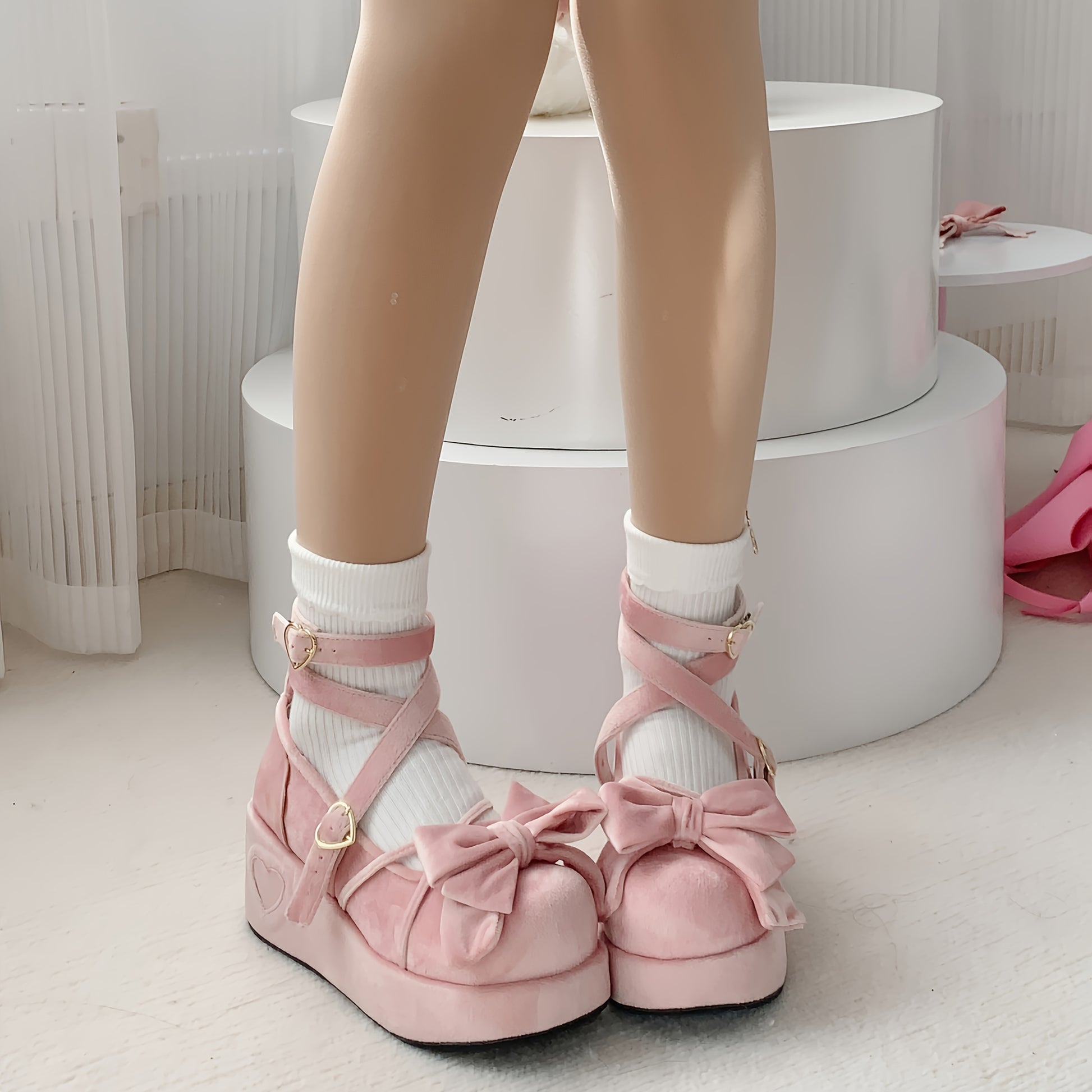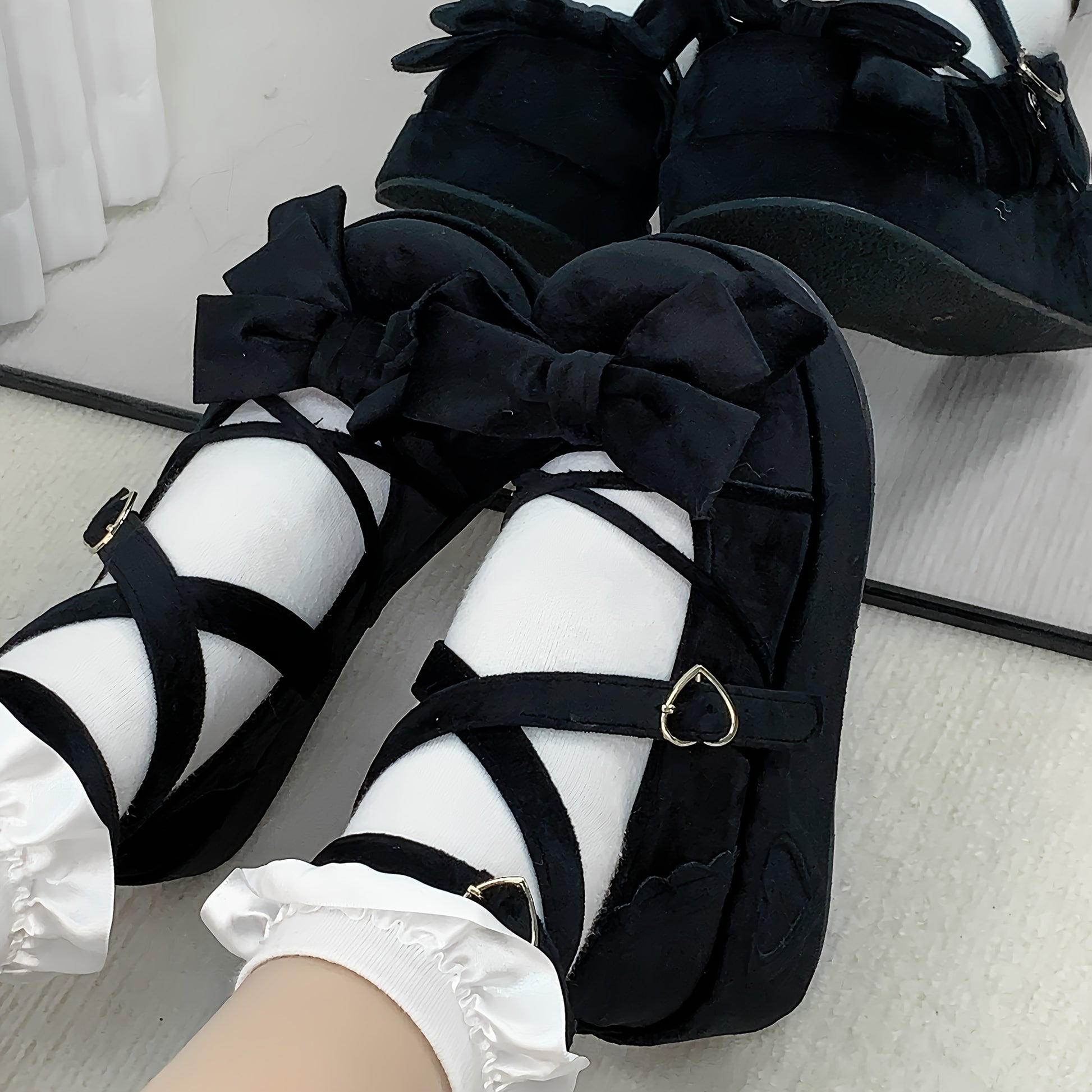 Women's Flannel Mary-Jane Shoes with Bow Round Toe Puncture Resistant All-Season Comfort