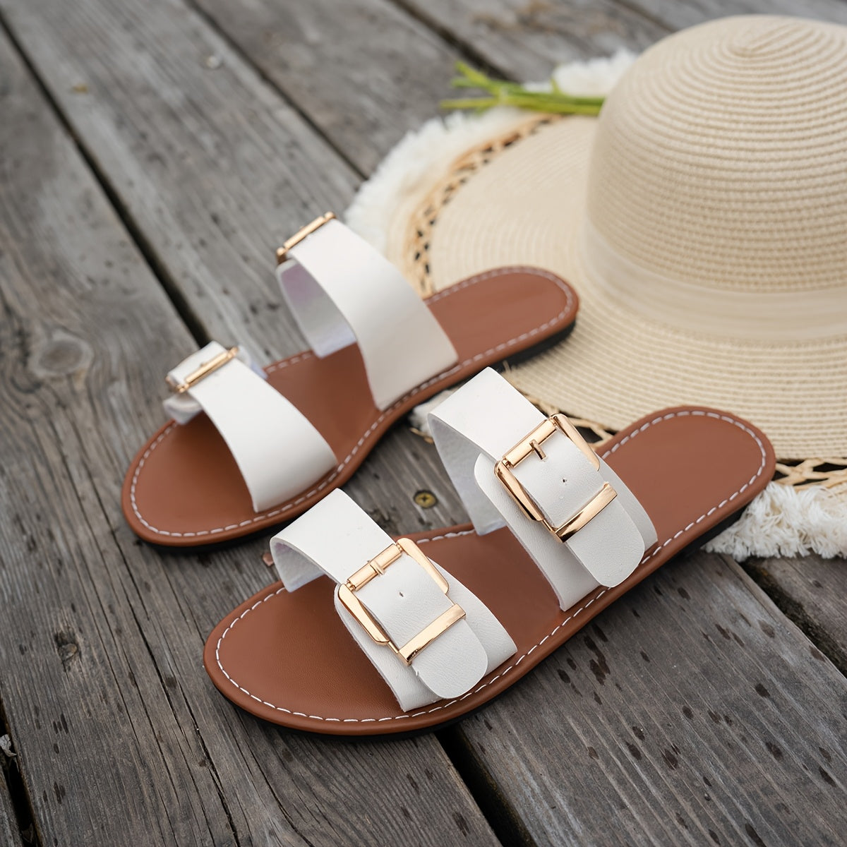 Women's Flat Slide Sandals PU Cover Open Toe Summer Beach Shoes