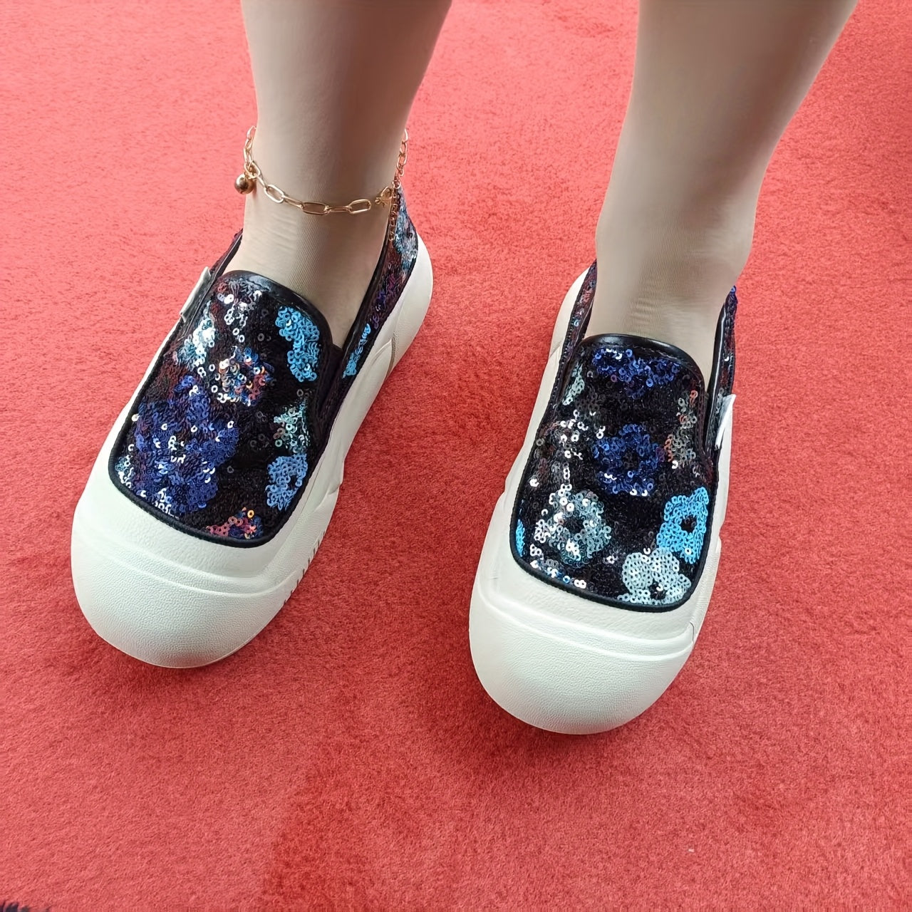 Women's Floral Glitter Casual Sneakers with Cushioned Insole and Rubber Sole
