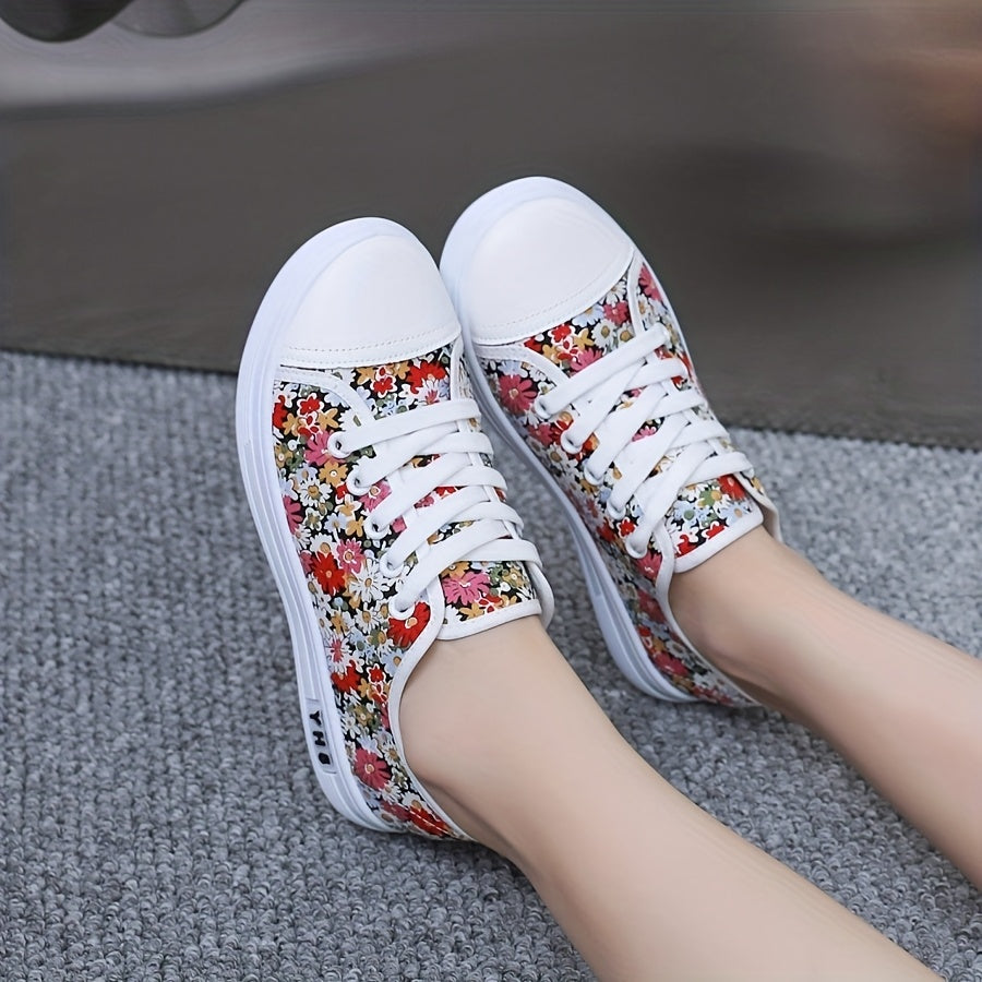 Women’s Floral Sneakers Low-Top Casual Shoes Breathable Fabric White Cherry Blossom