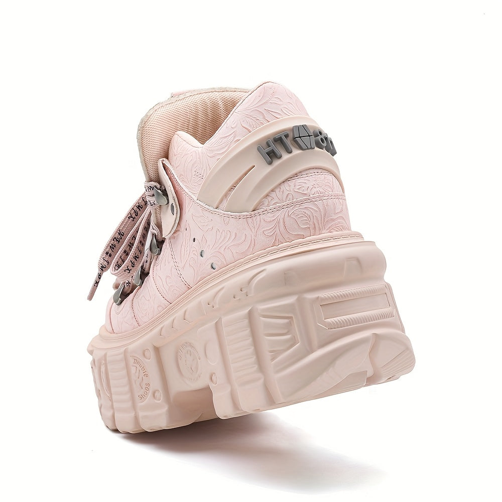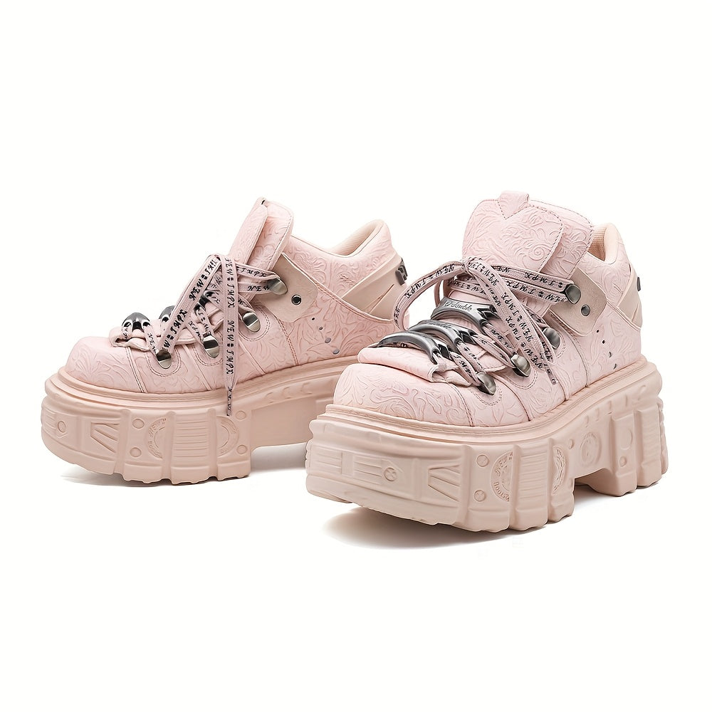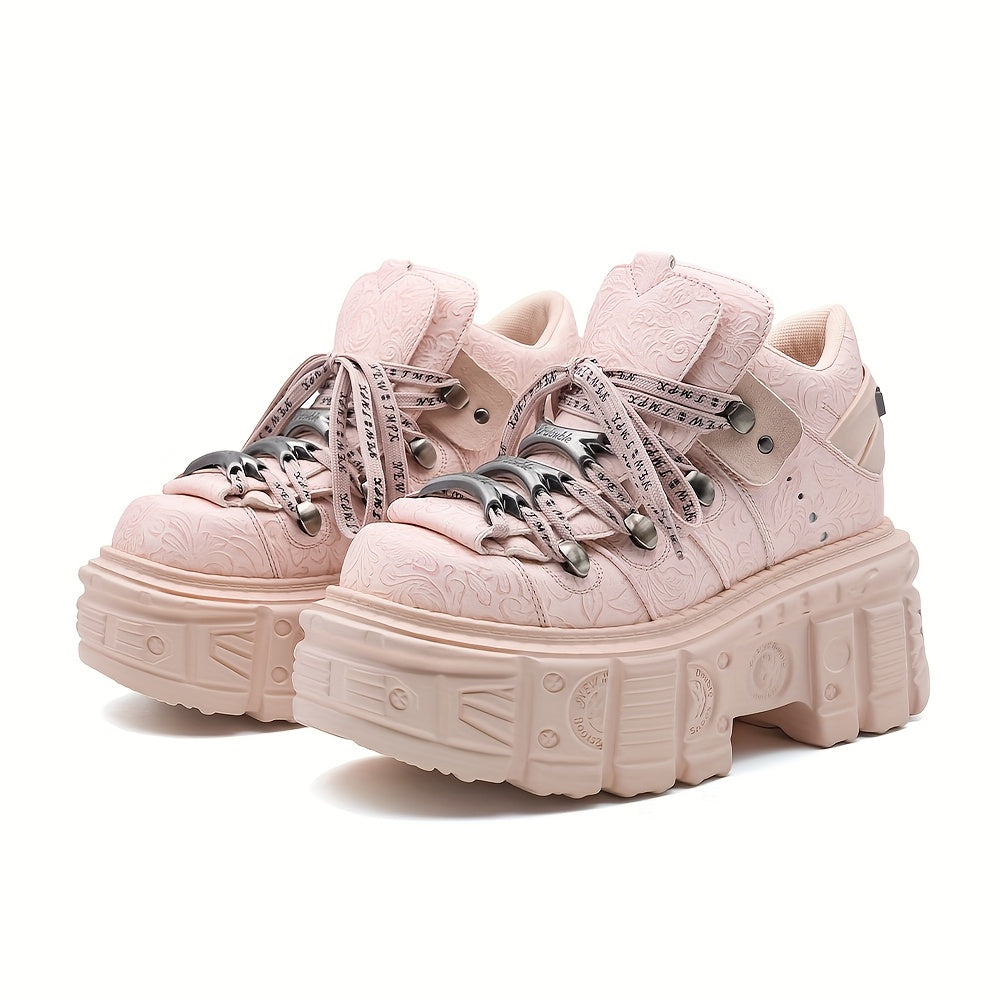 Women's Gothic Platform Boots Leather-Style Lace-Up Edgy All-Season Footwear