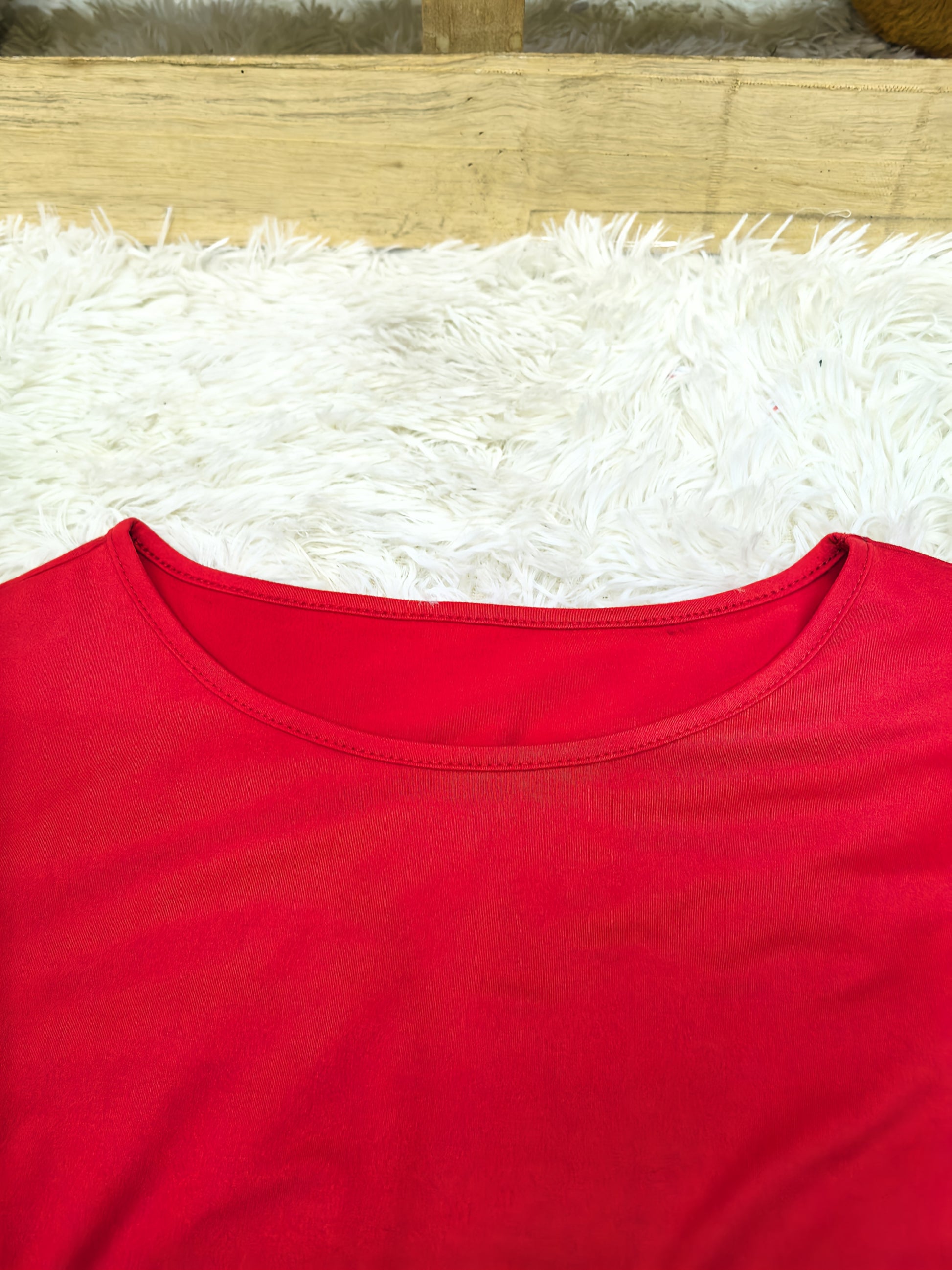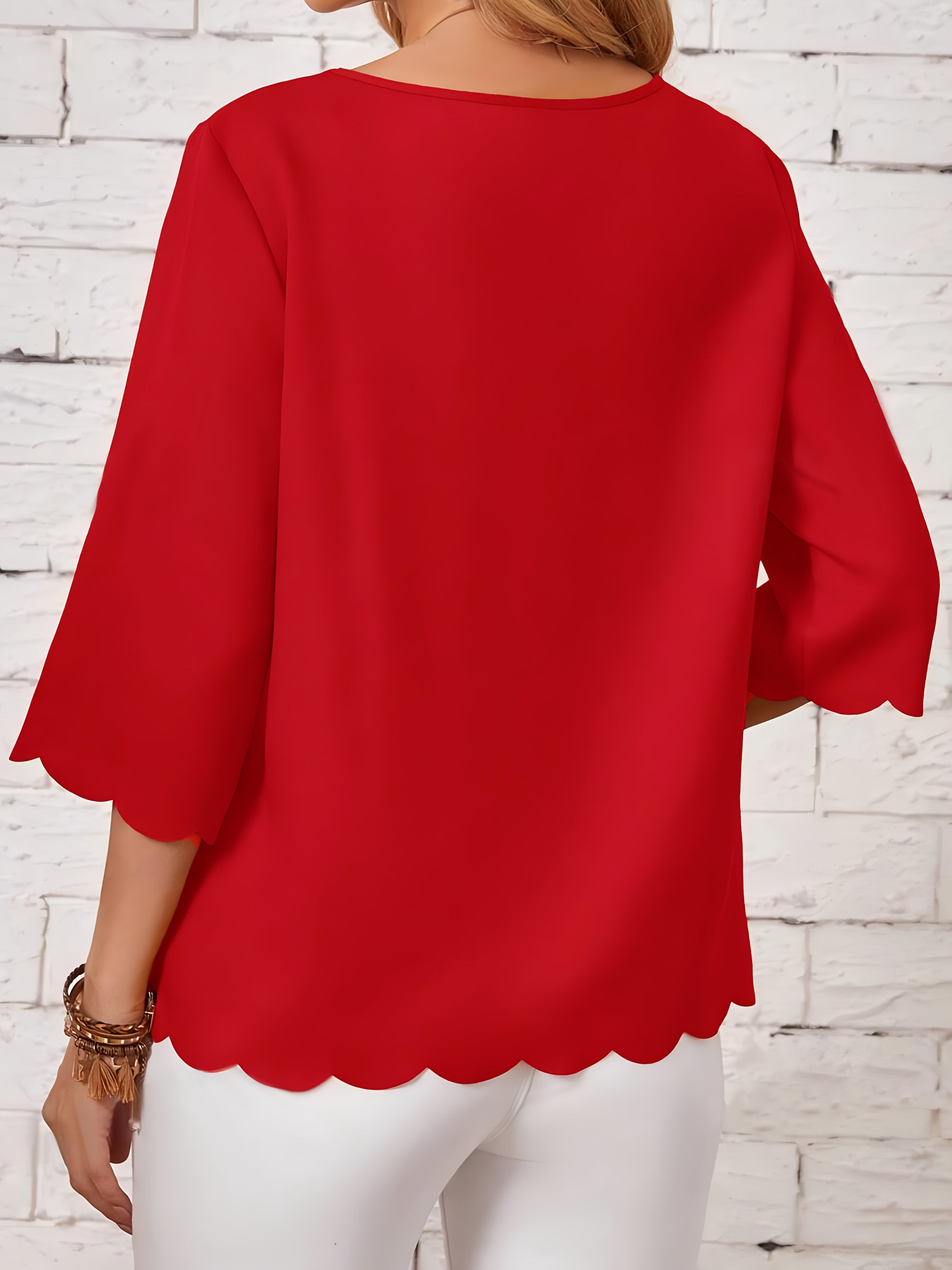 Women's Green Ruffled Hem Blouse Stretchy Round Neck Casual Formal Wear