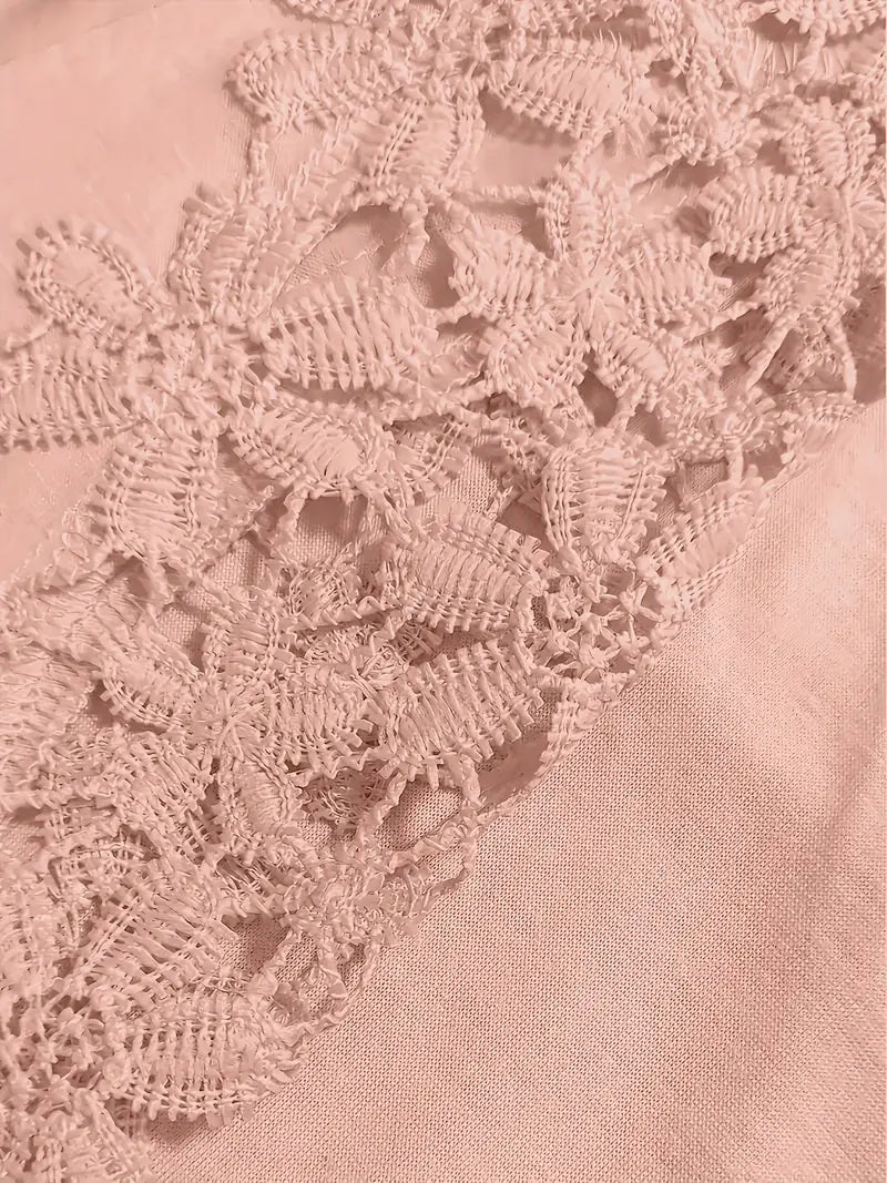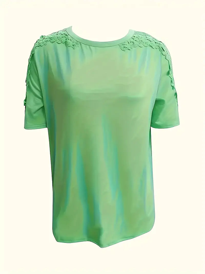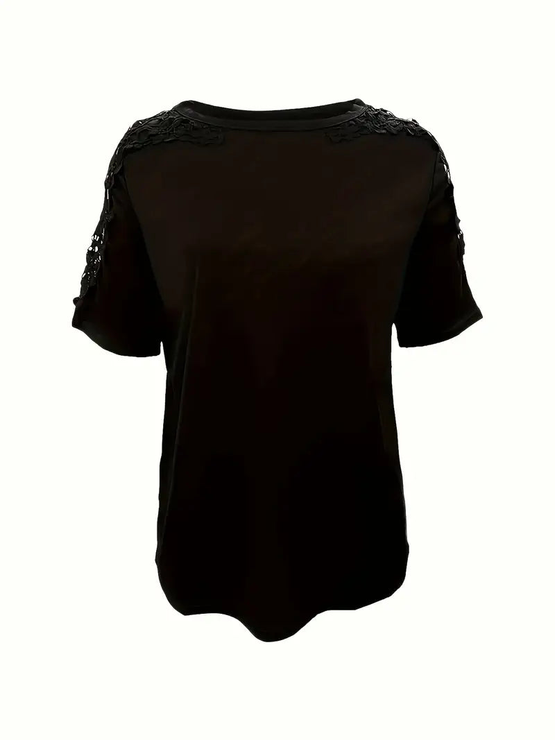 Women's Lace Trim Short Sleeve T-Shirt Breathable Polyester Casual Top