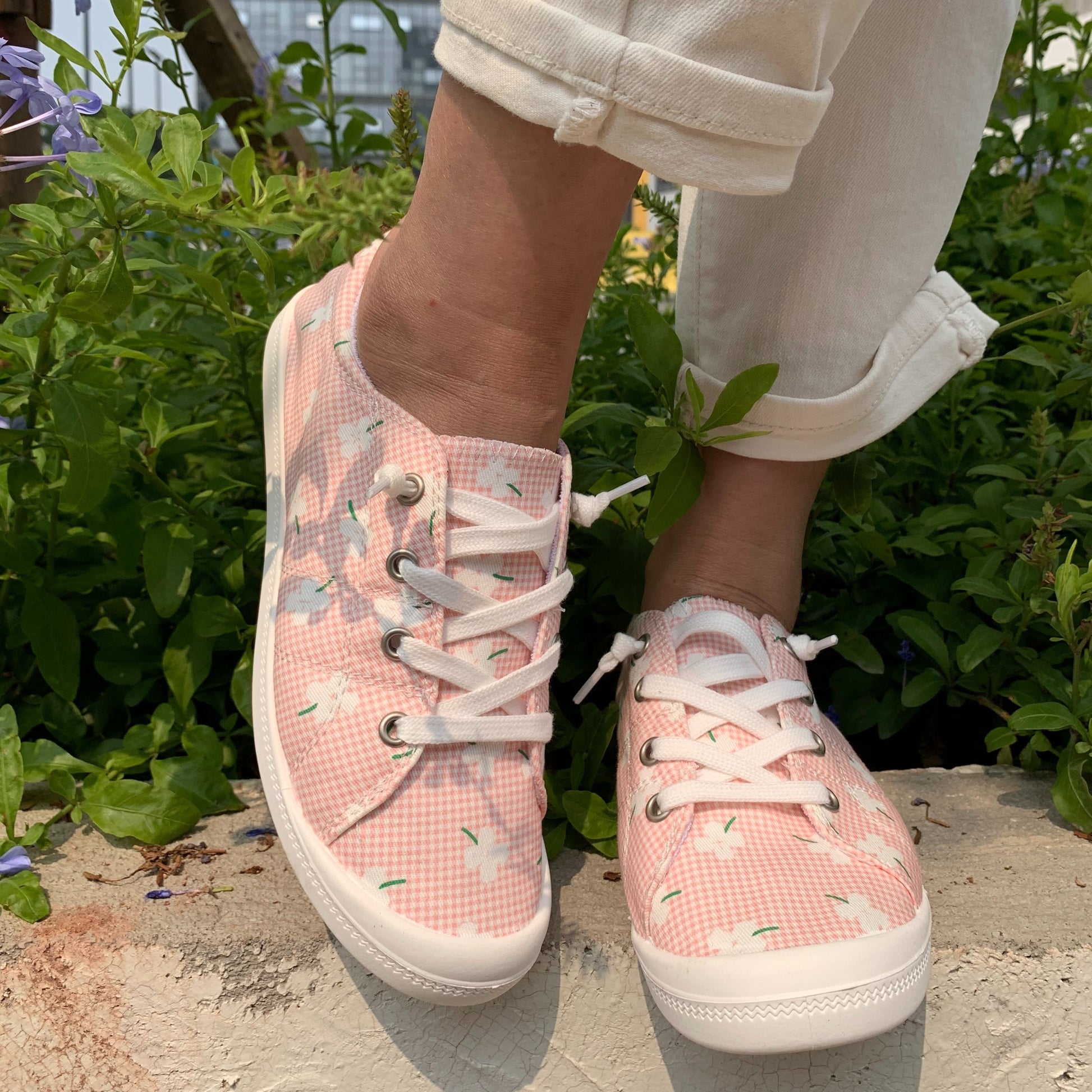 Women's Pink Floral Slip-On Sneakers - Soft Sole All-Season Casual Shoes