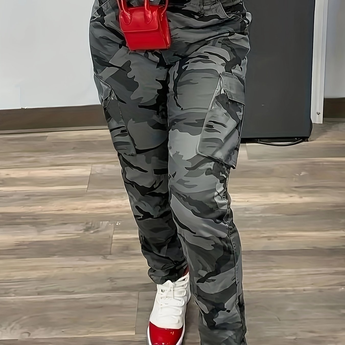 Women's Plus Size Camo Cargo Jeans Stretch Denim Straight Leg Casual Pants