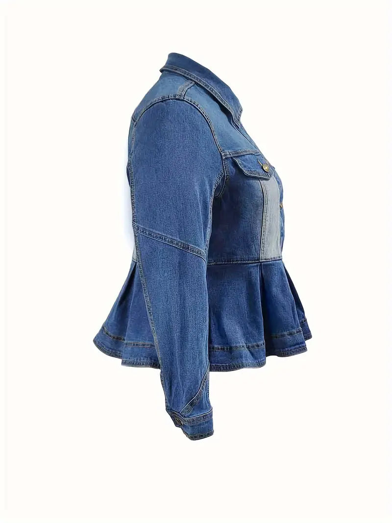 Women's Plus Size Denim Jacket Ruffle Hem Washed Blue Lightweight