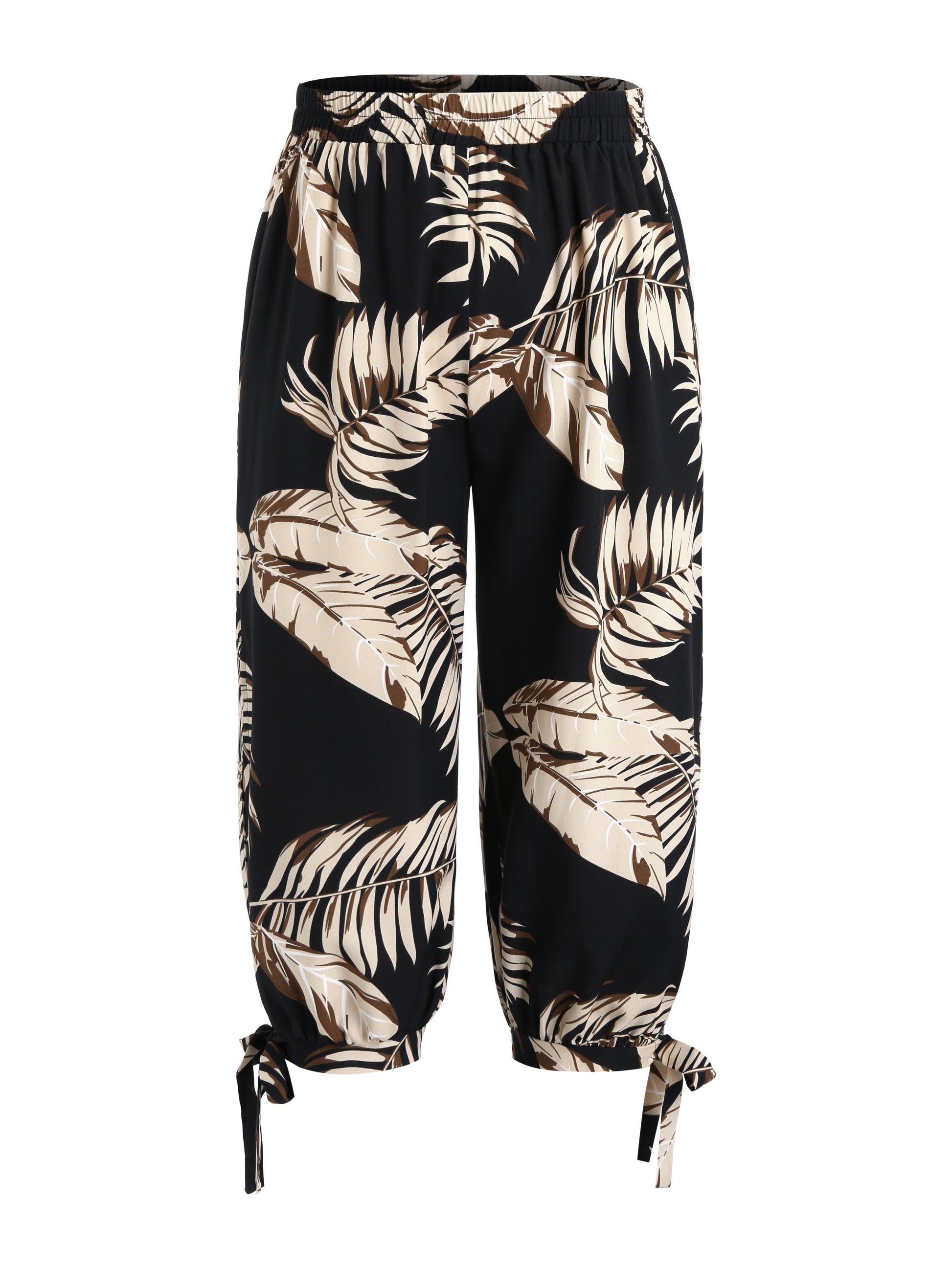 Women's Plus Size Floral Print Summer 3/4 Pants Adjustable Waist Breathable