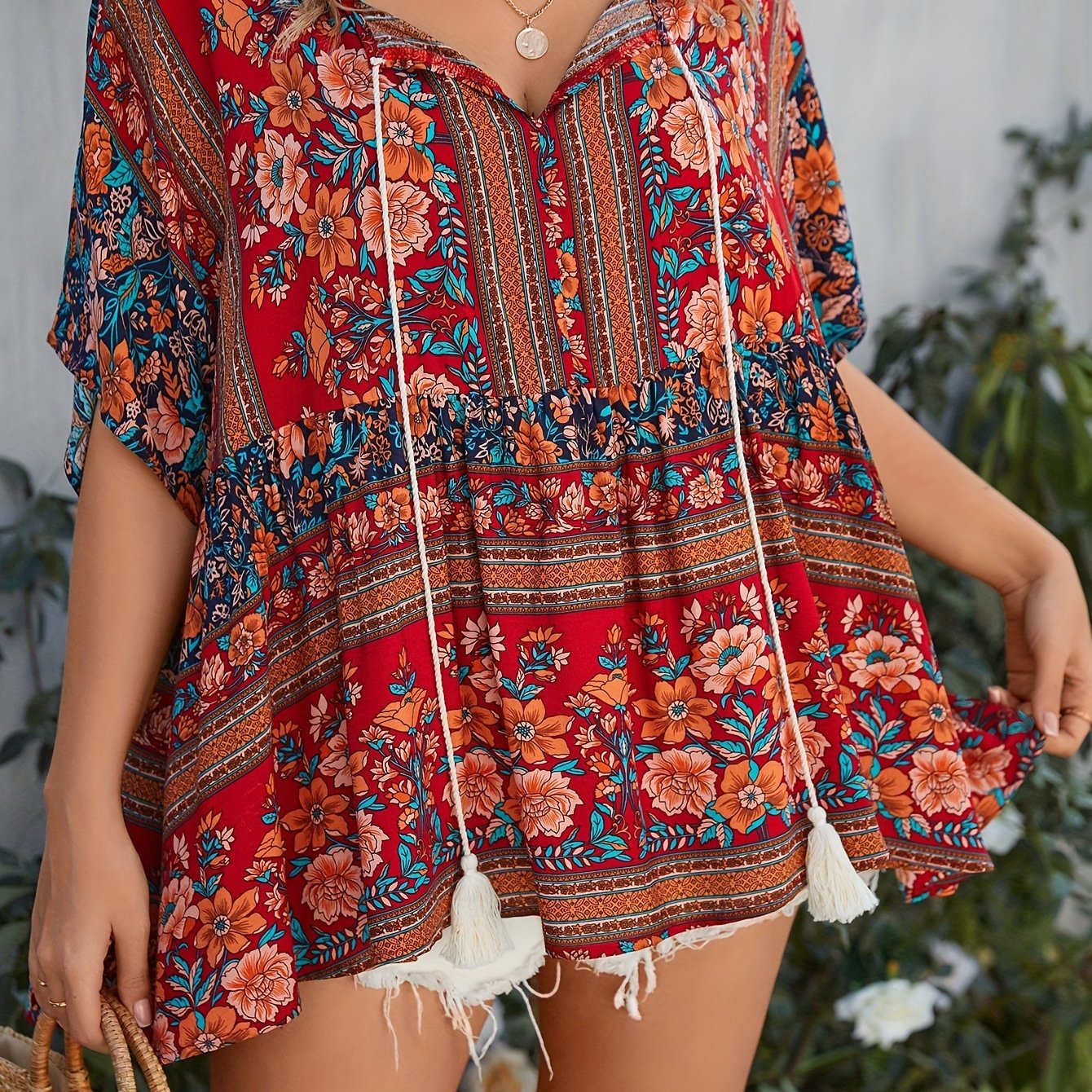 Women's Plus Size Floral Print V-Neck Short Sleeve Top