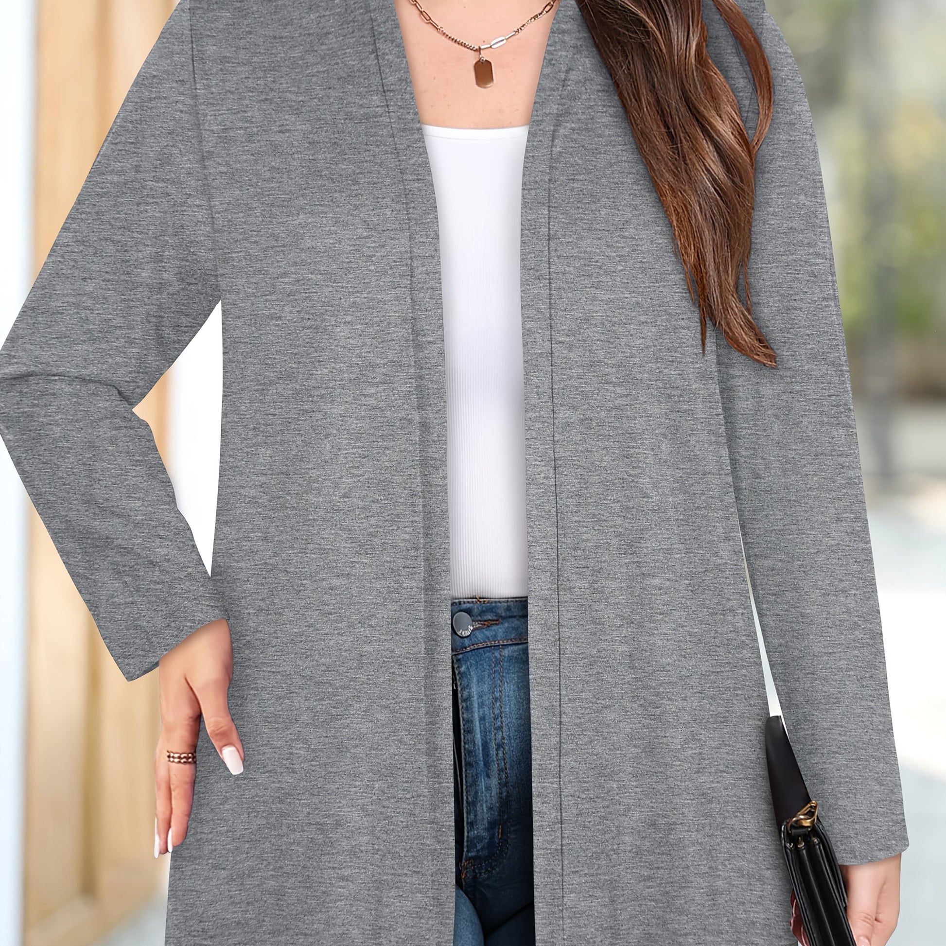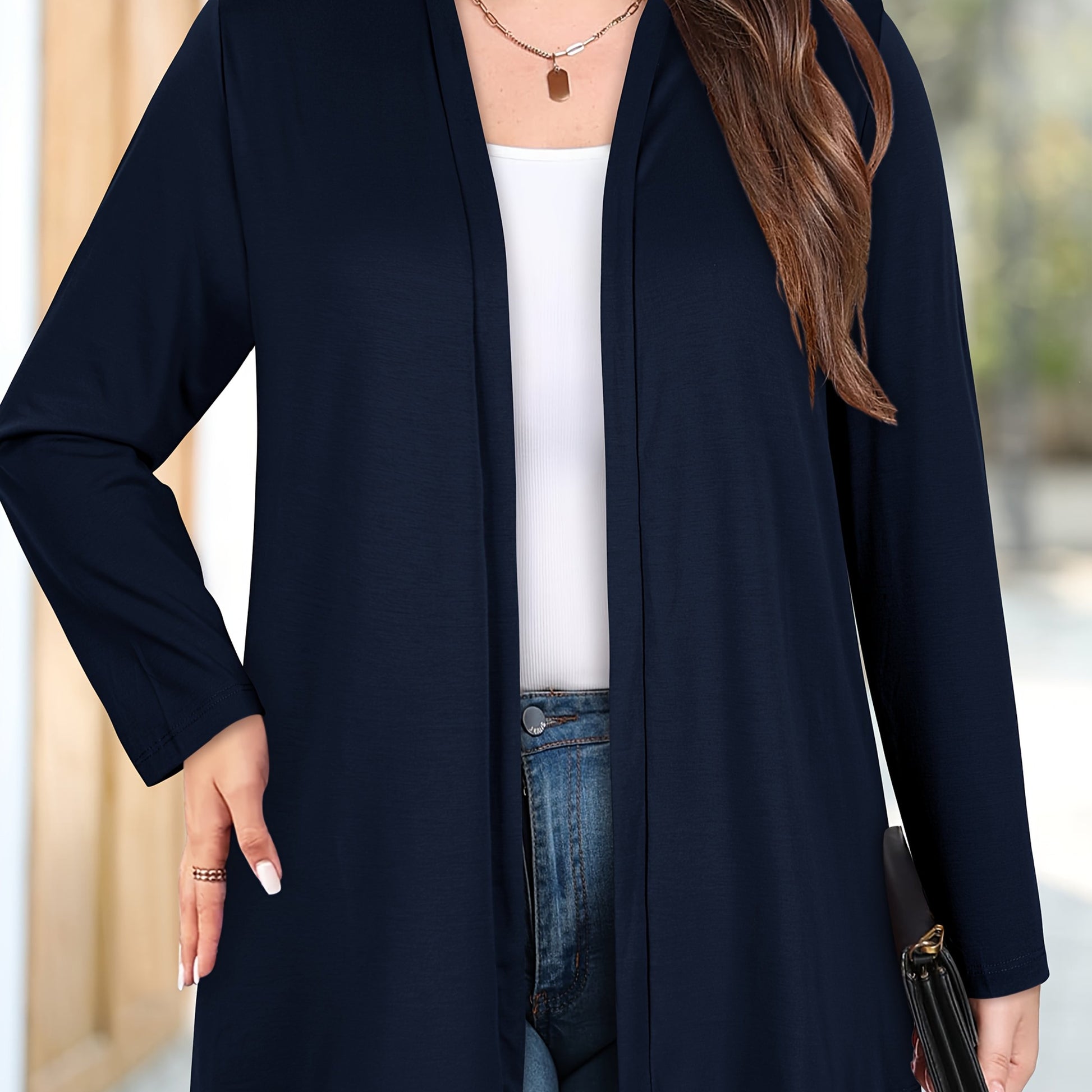 Women's Plus Size Long Sleeve Mid-Length Cardigan, Comfortable and Stylish