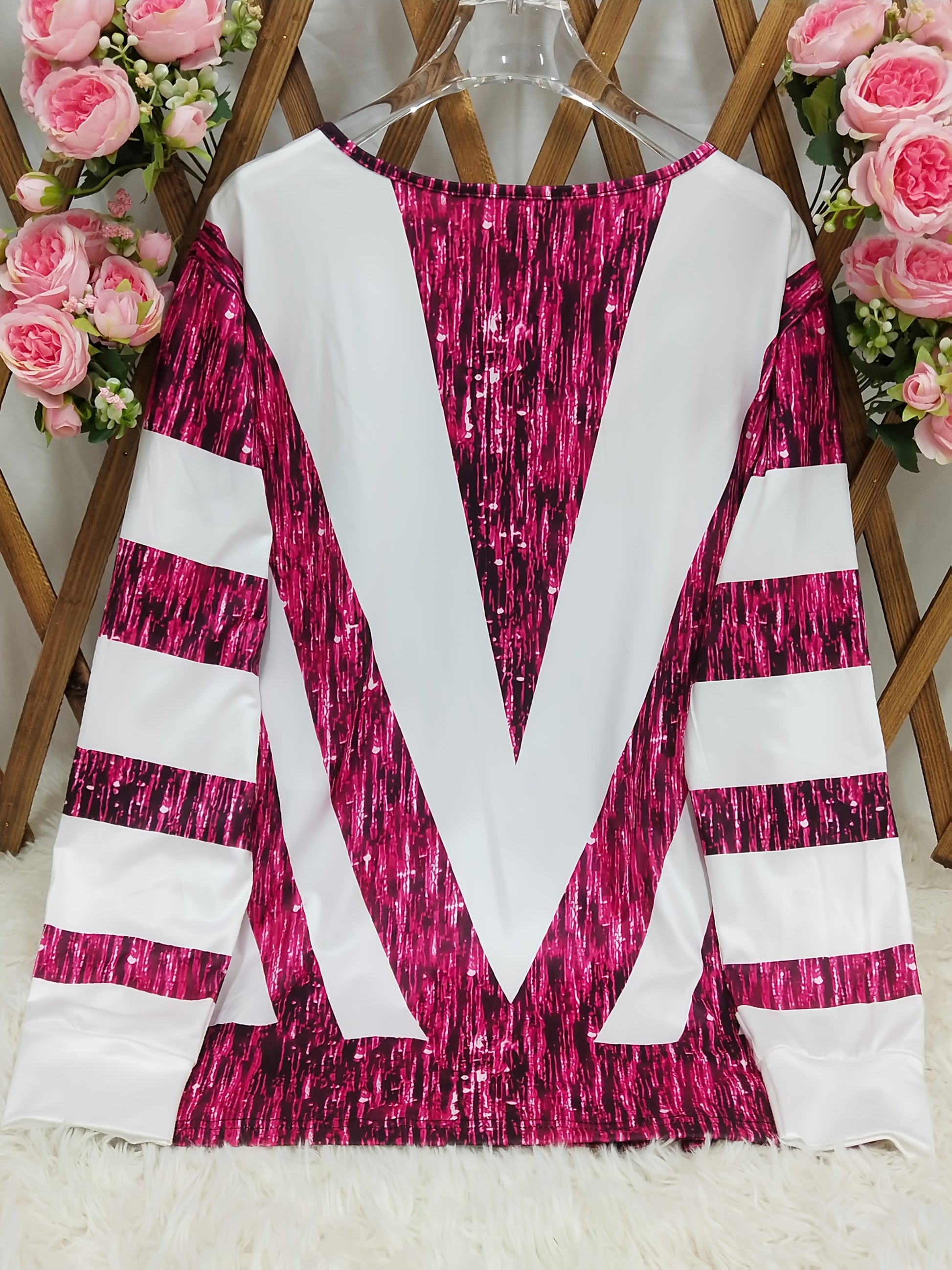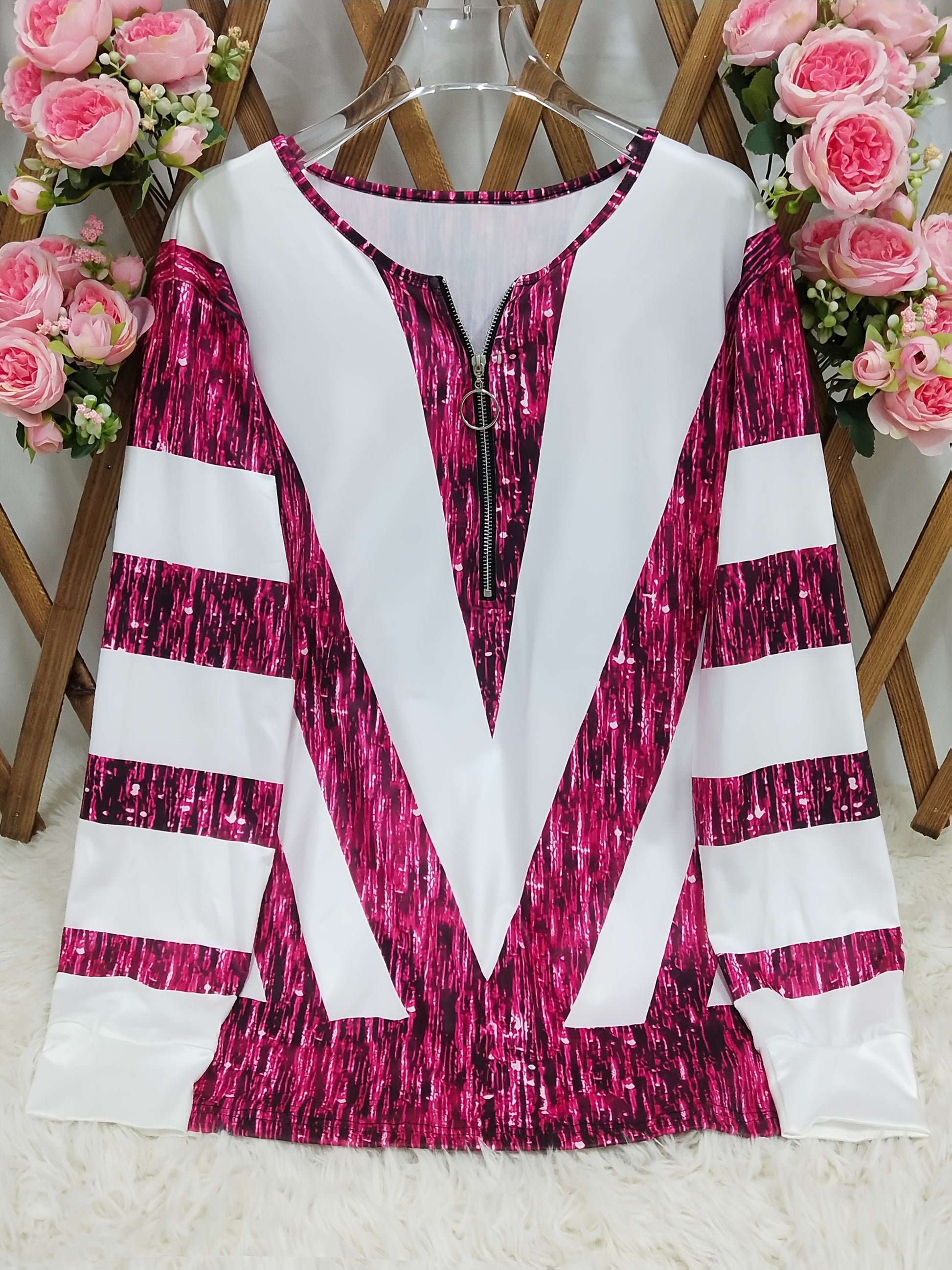 Women’s Plus Size Long Sleeve T-Shirt With Stripe Print Casual Top