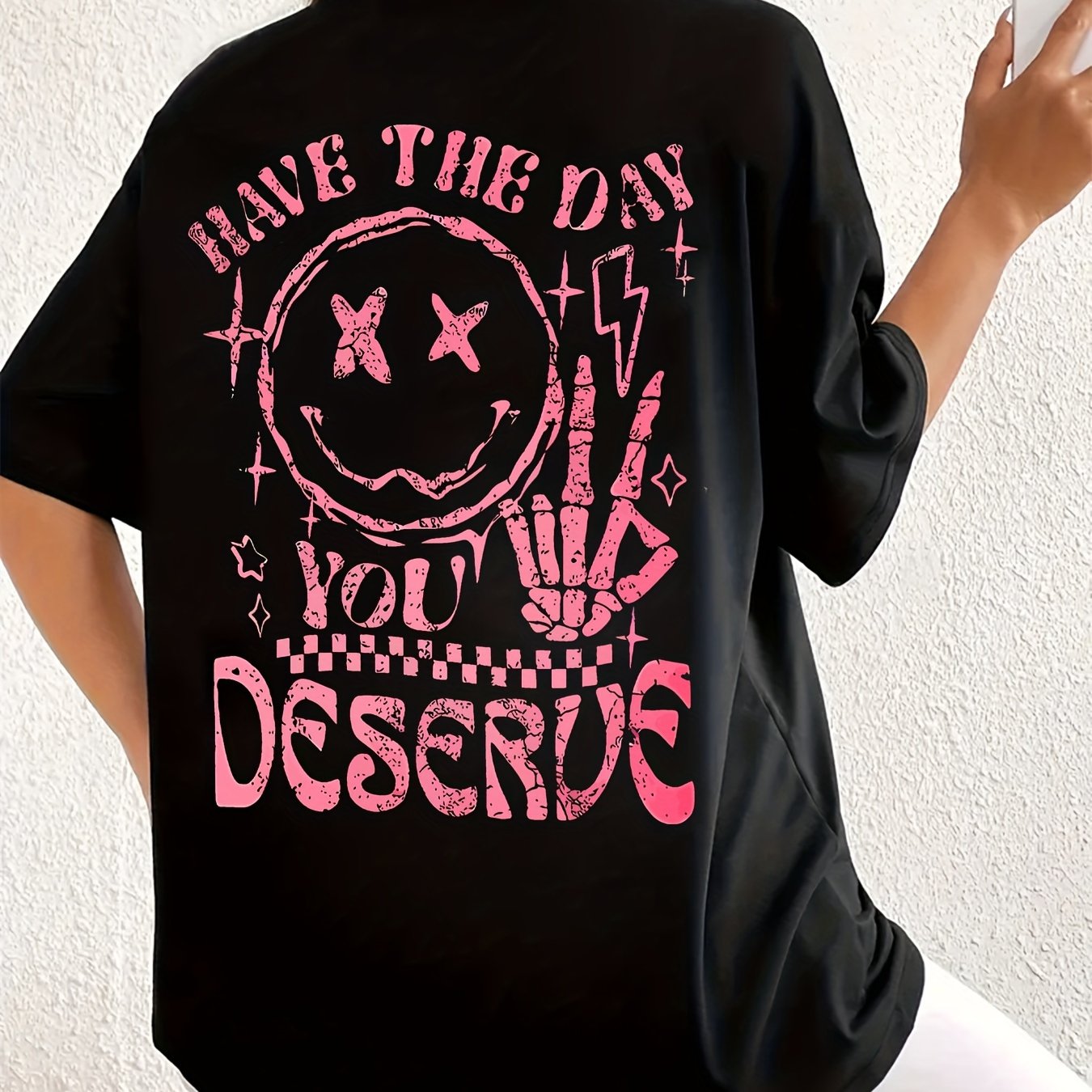 Women’s Plus Size Oversized Graphic T-Shirt Black Pink Casual Short Sleeve