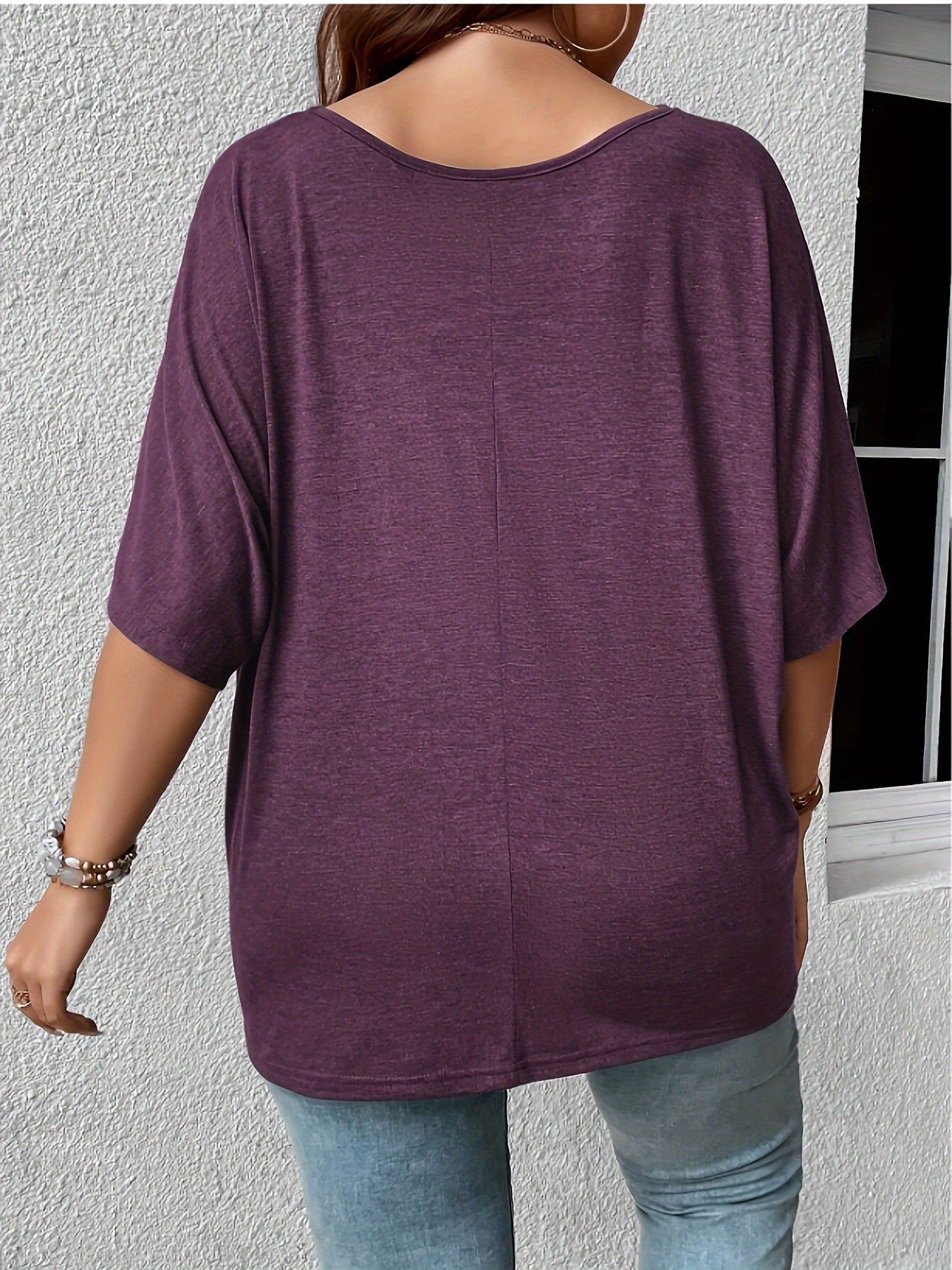 Women's Plus Size Solid V Neck T-Shirt Casual Short Sleeve Top